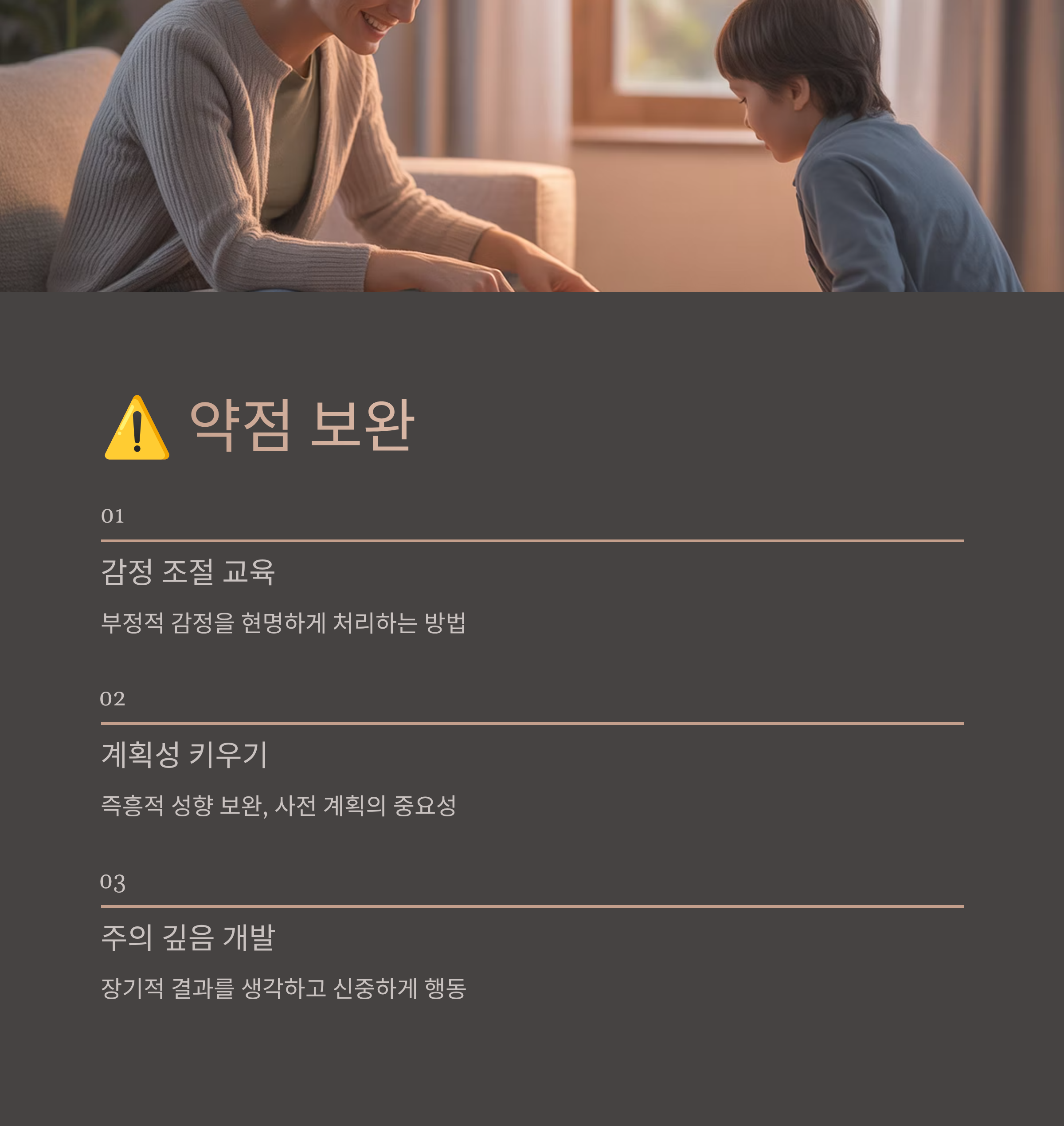 계획성 키우기: 즉흥적 성향을 보완하기 위해 사전 계획의 중요성을 강조합니다.