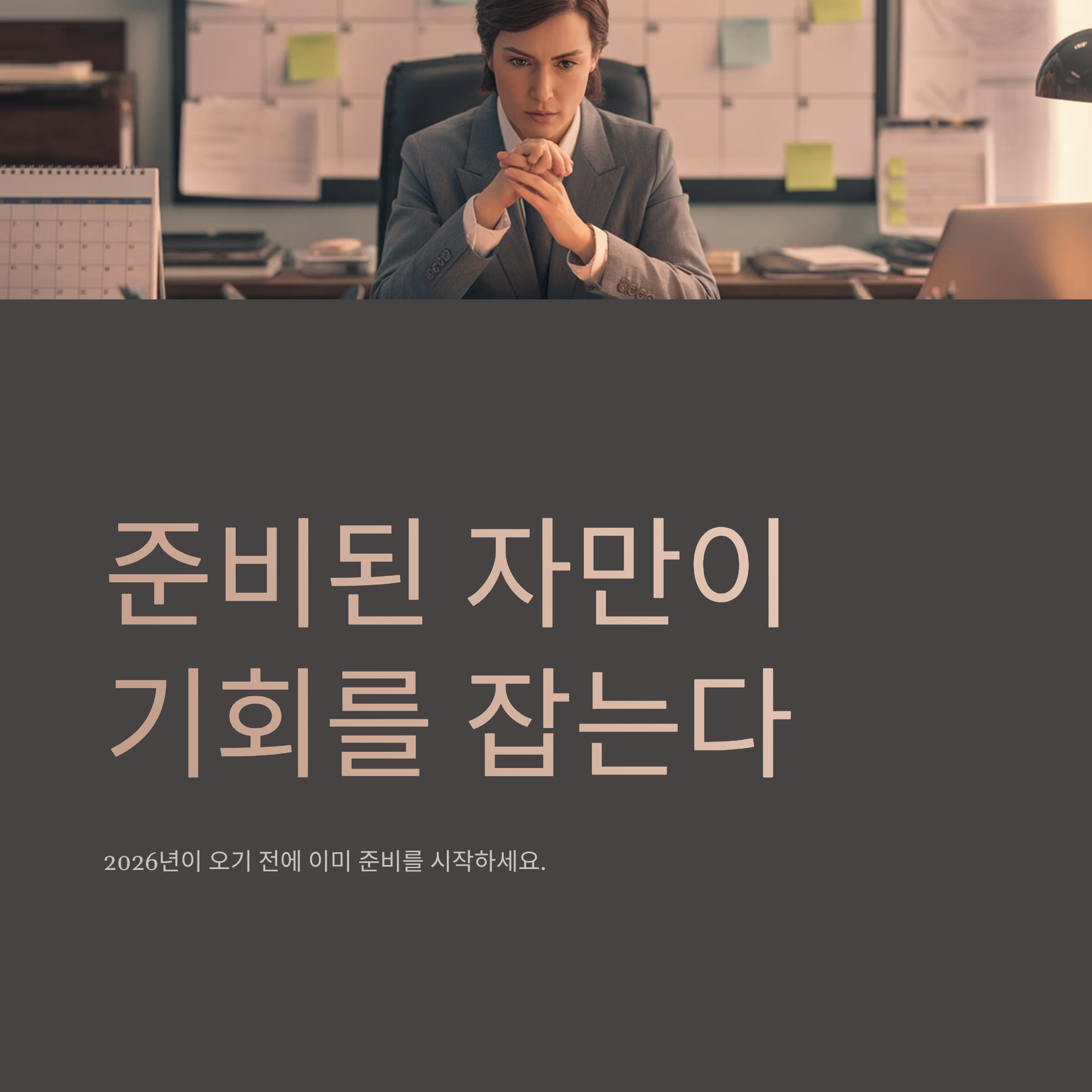 첫째, 준비된 자만이 기회를 잡을 수 있습니다. 2026년이 오기 전에 이미 준비를 시작하세요.