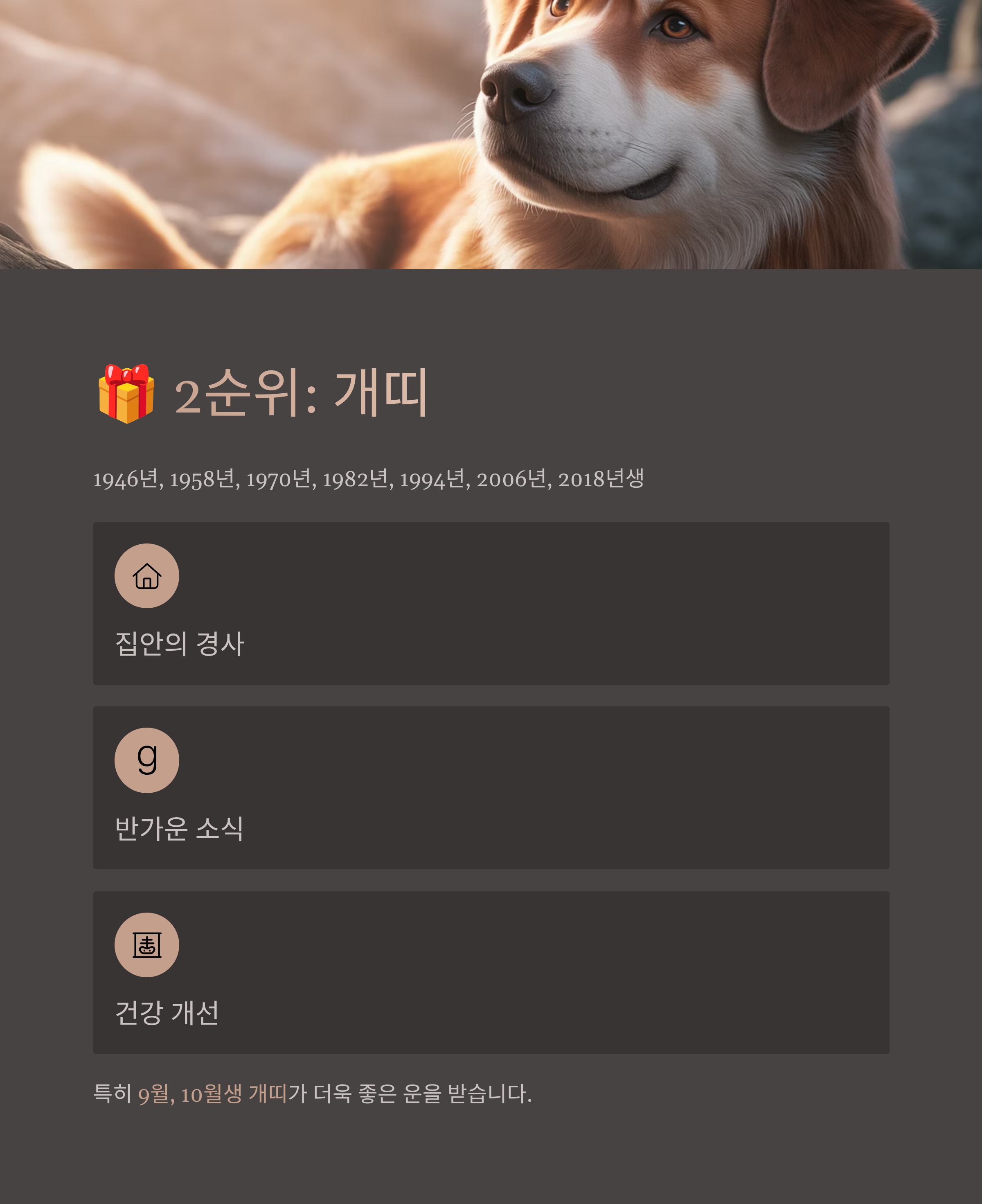 🎁 2순위: 개띠 (특히 1946년, 1958년, 1970년, 1982년, 1994년, 2006년, 2018년생)