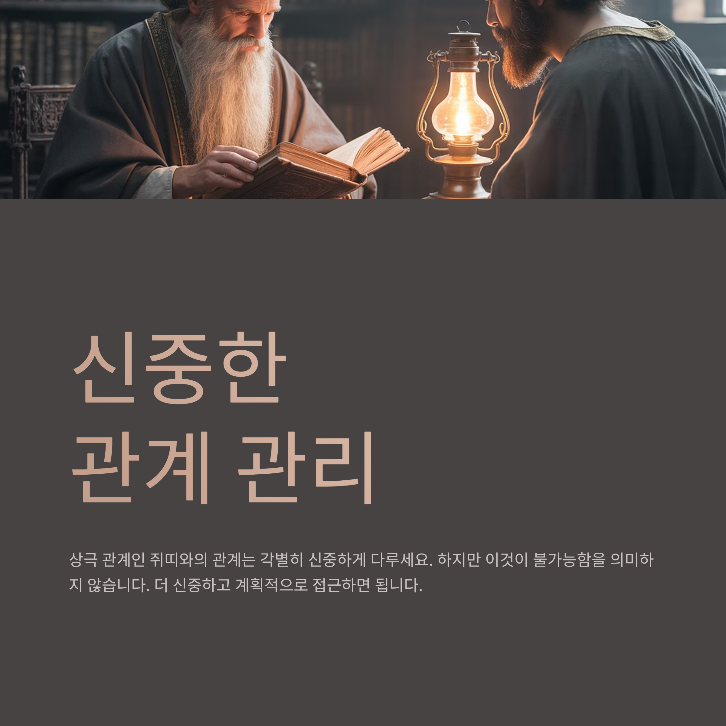셋째, 상극 관계인 쥐띠와의 관계는 각별히 신중하게 다루세요. 하지만 이것이 불가능함을 의미하지 않습니다. 더 신중하고 계획적으로 접근하면 됩니다.