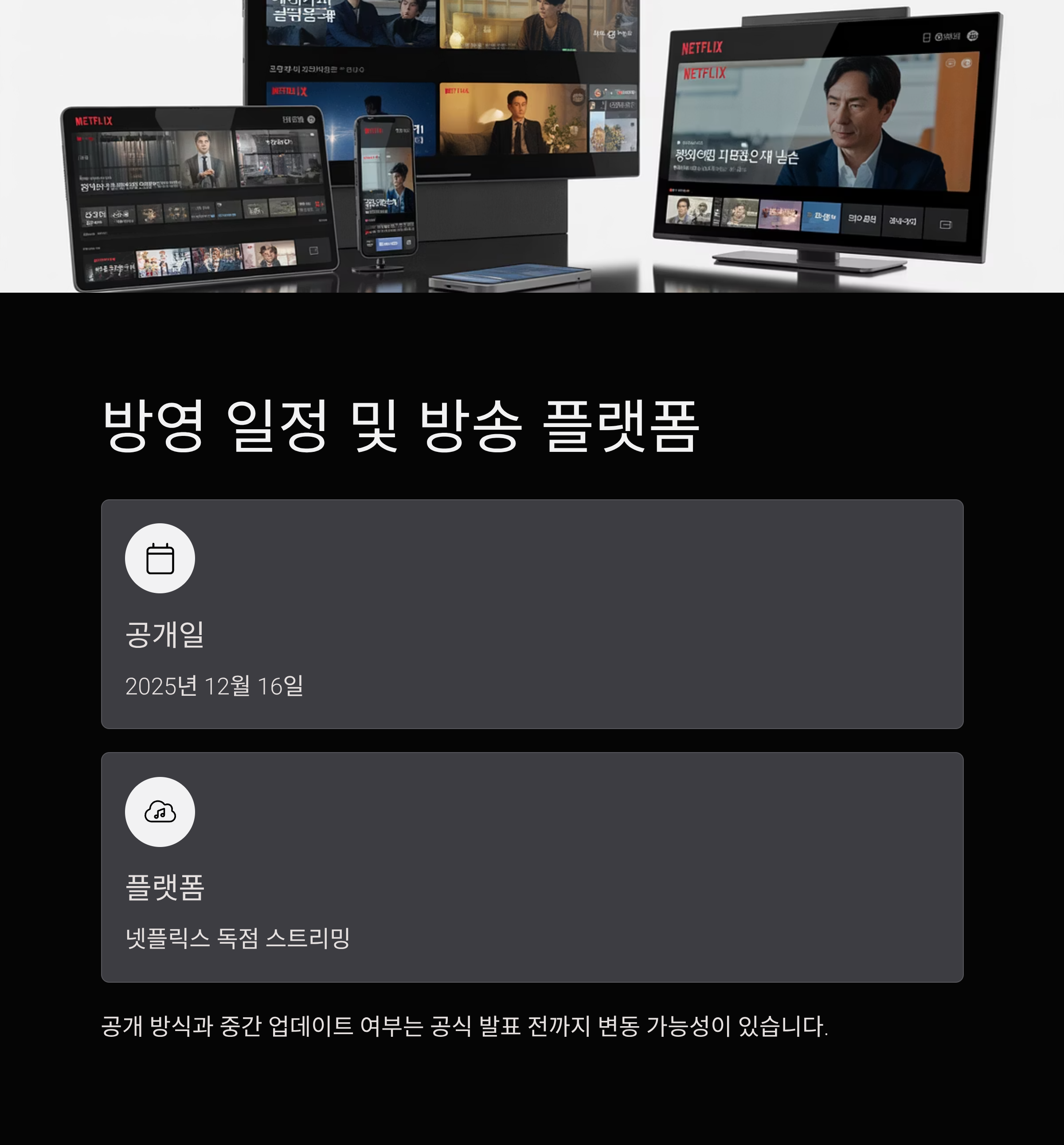 - 2025년 12월 16일 넷플릭스에서 공개됩니다.