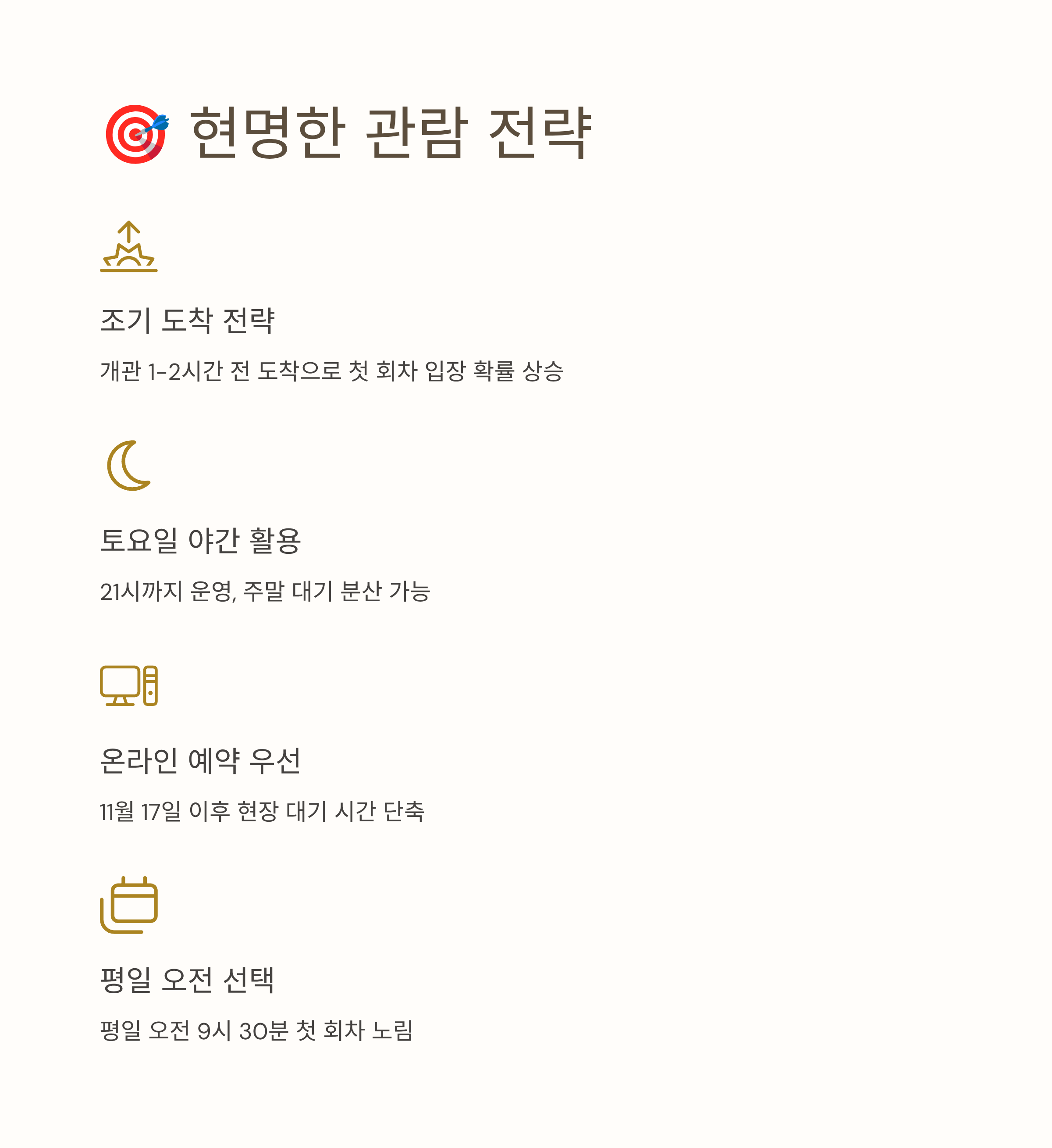 조기 도착 전략: 개관 1~2시간 전 도착 (최대 첫 회차 입장 확률 상승)