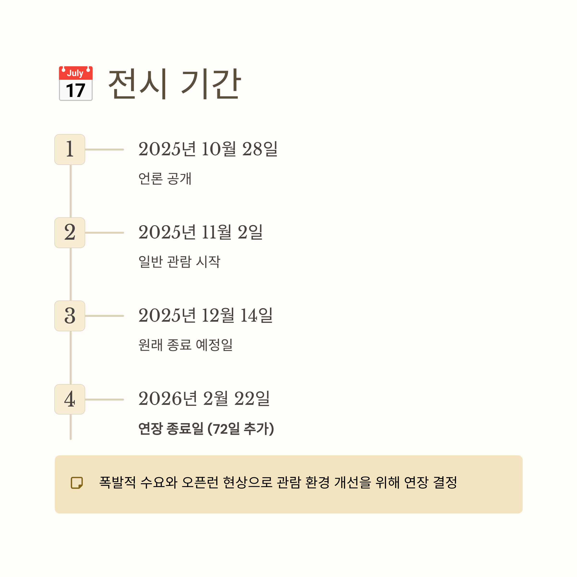연장 이유: 개막 이후 폭발적 수요와 오픈런 현상으로 관람 환경 개선 필요