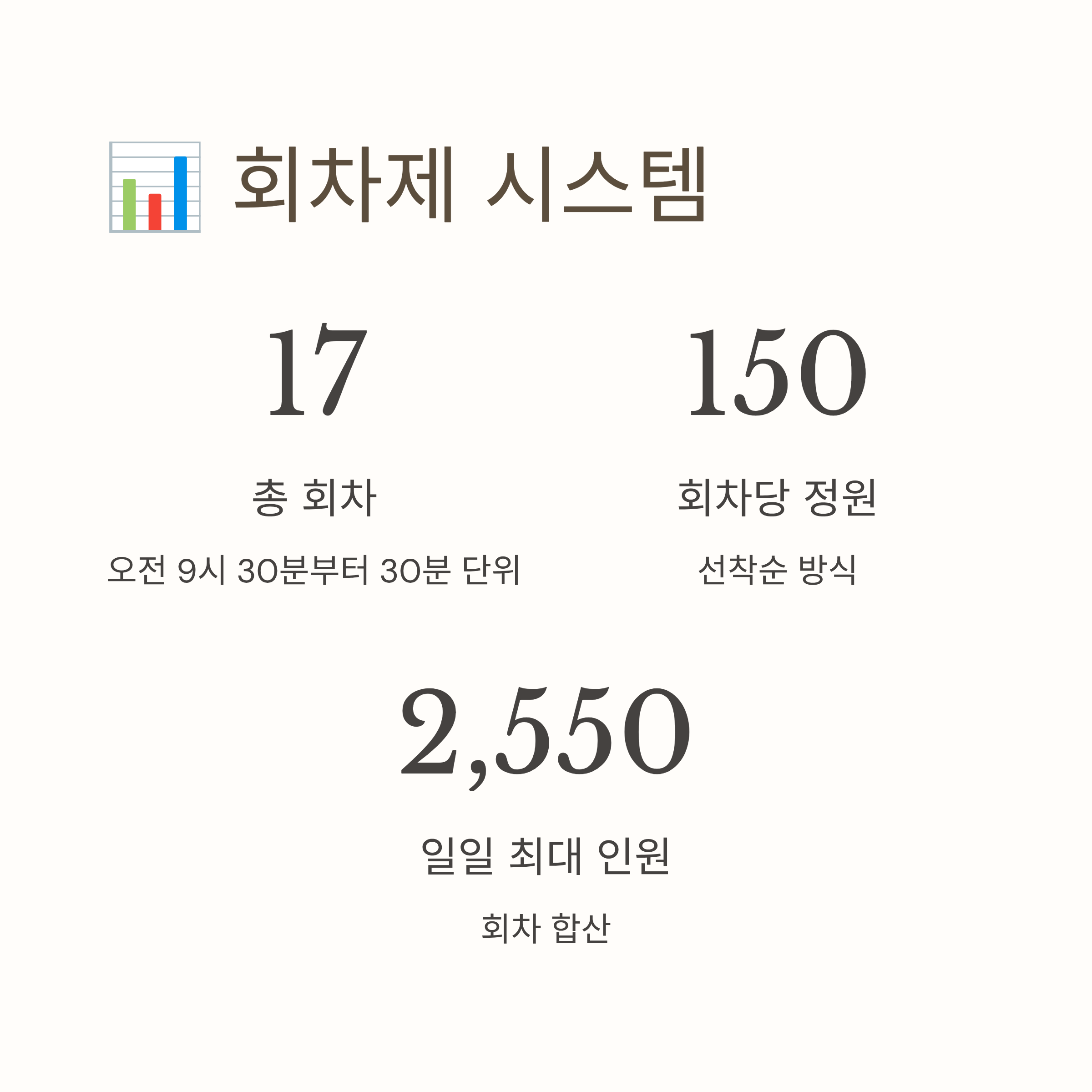 회차 운영: 오전 9시 30분부터 30분 단위로 총 17회차