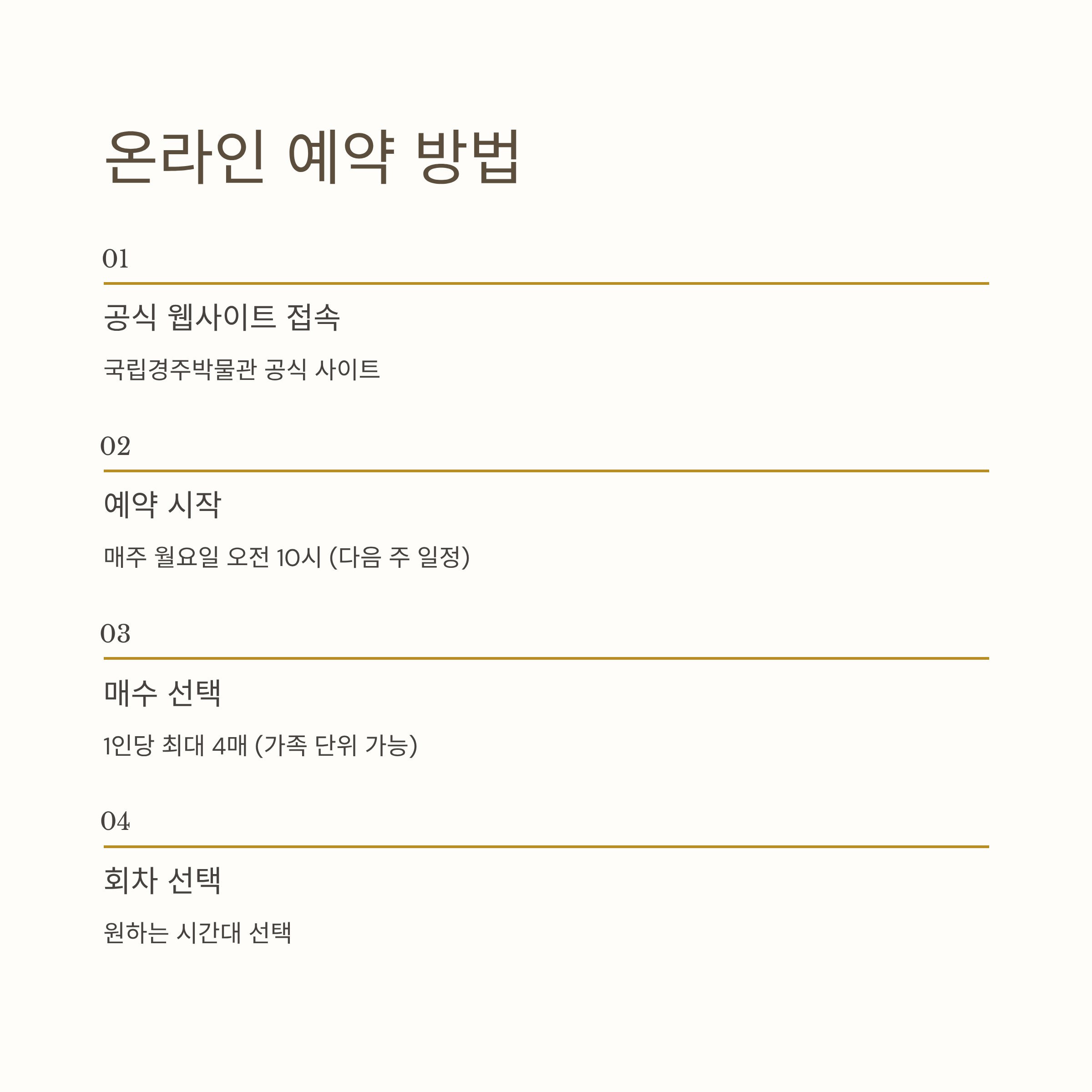온라인 예약 시 국립경주박물관 공식 웹사이트만 이용 (허위 예약 사이트 주의)