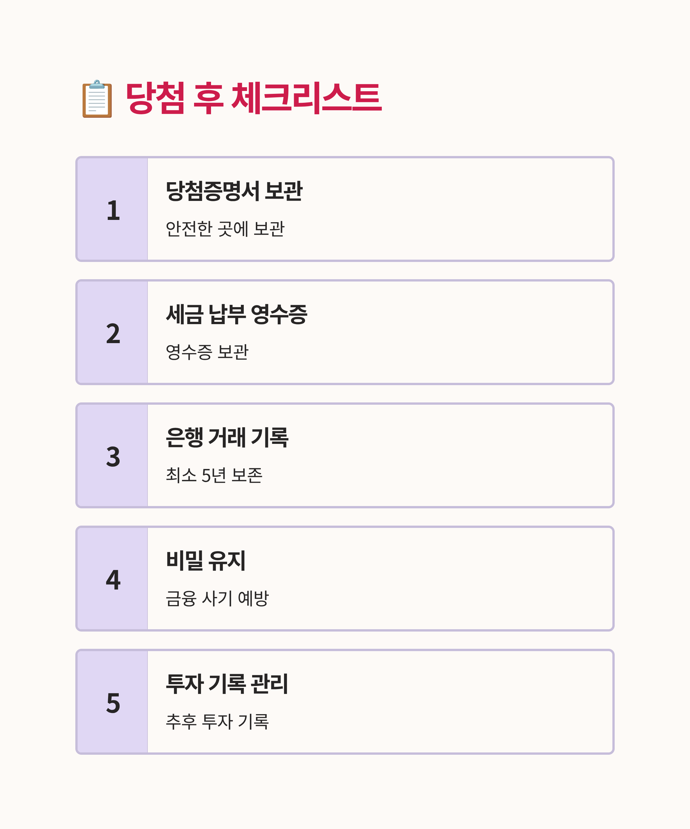 - 급한 결정 미루기: 당첨 직후 1~3개월 대기