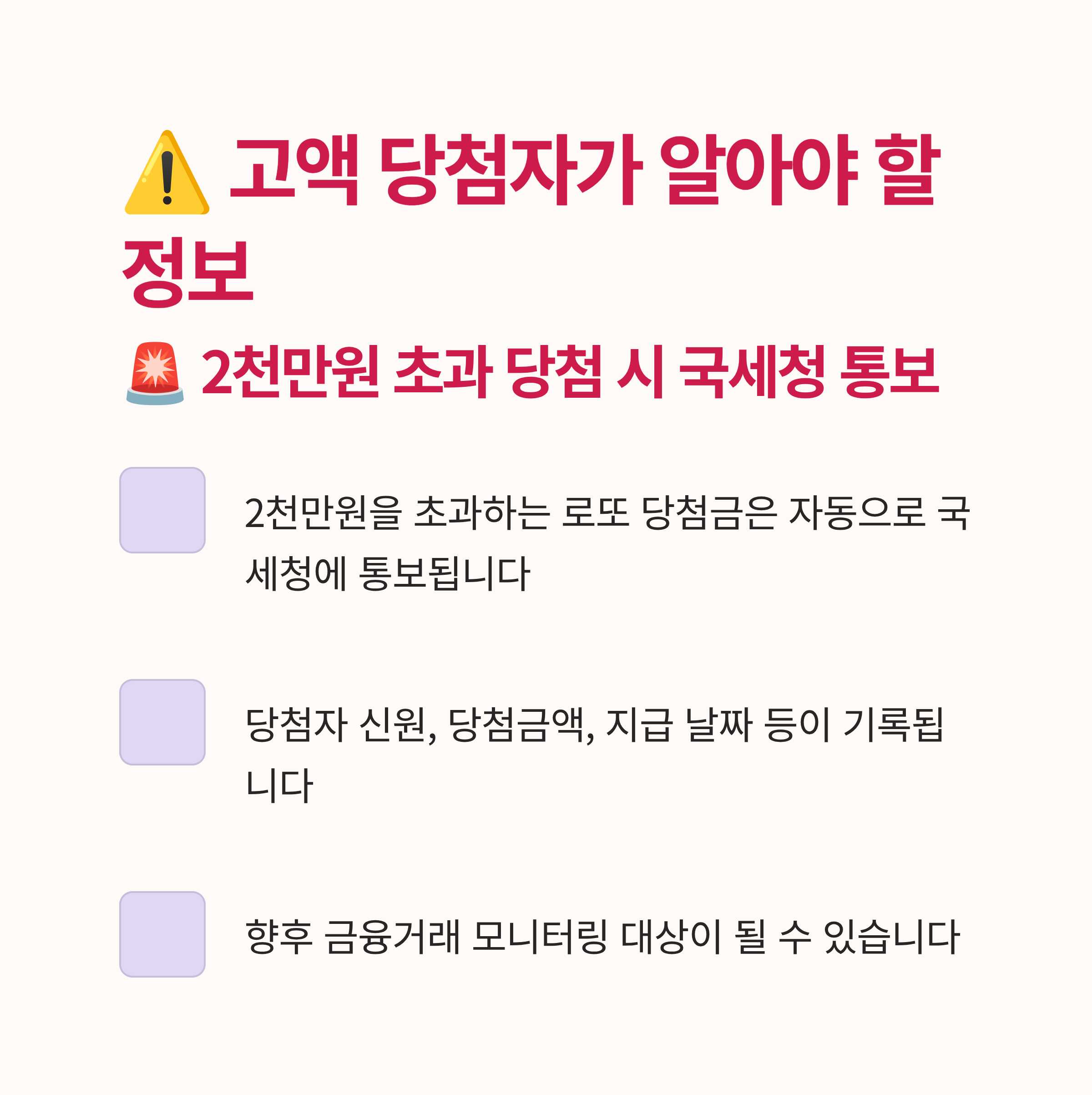 🚨 2천만원 초과 당첨 시 국세청 통보