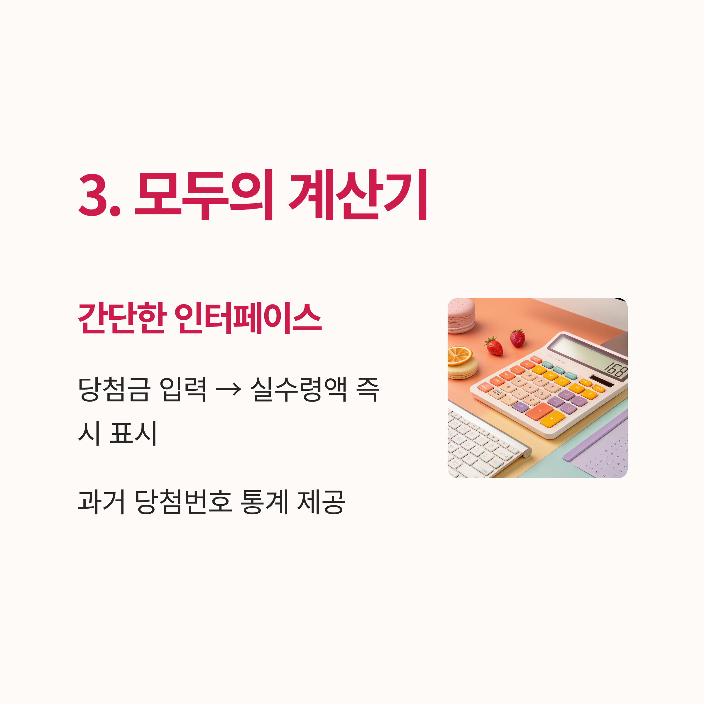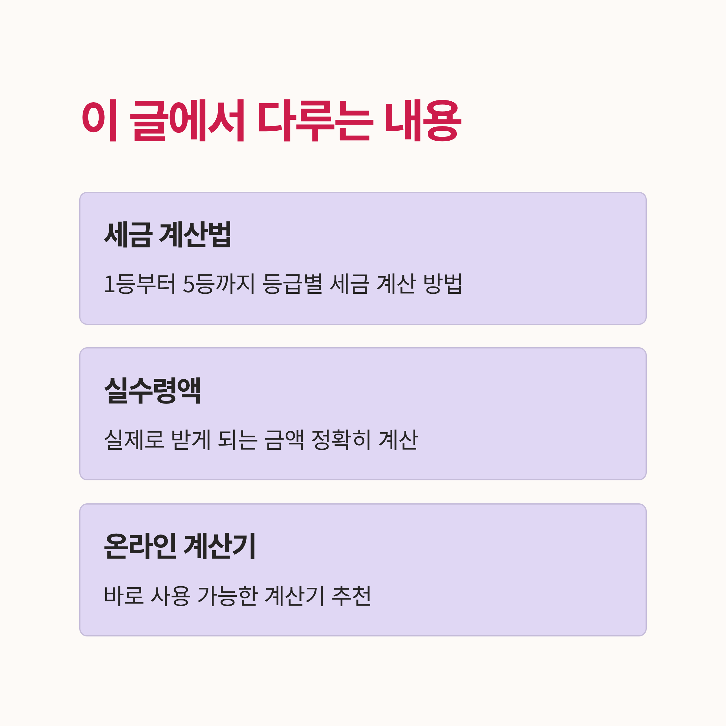 - 사용법: 당첨금 입력 → 실수령액 즉시 표시