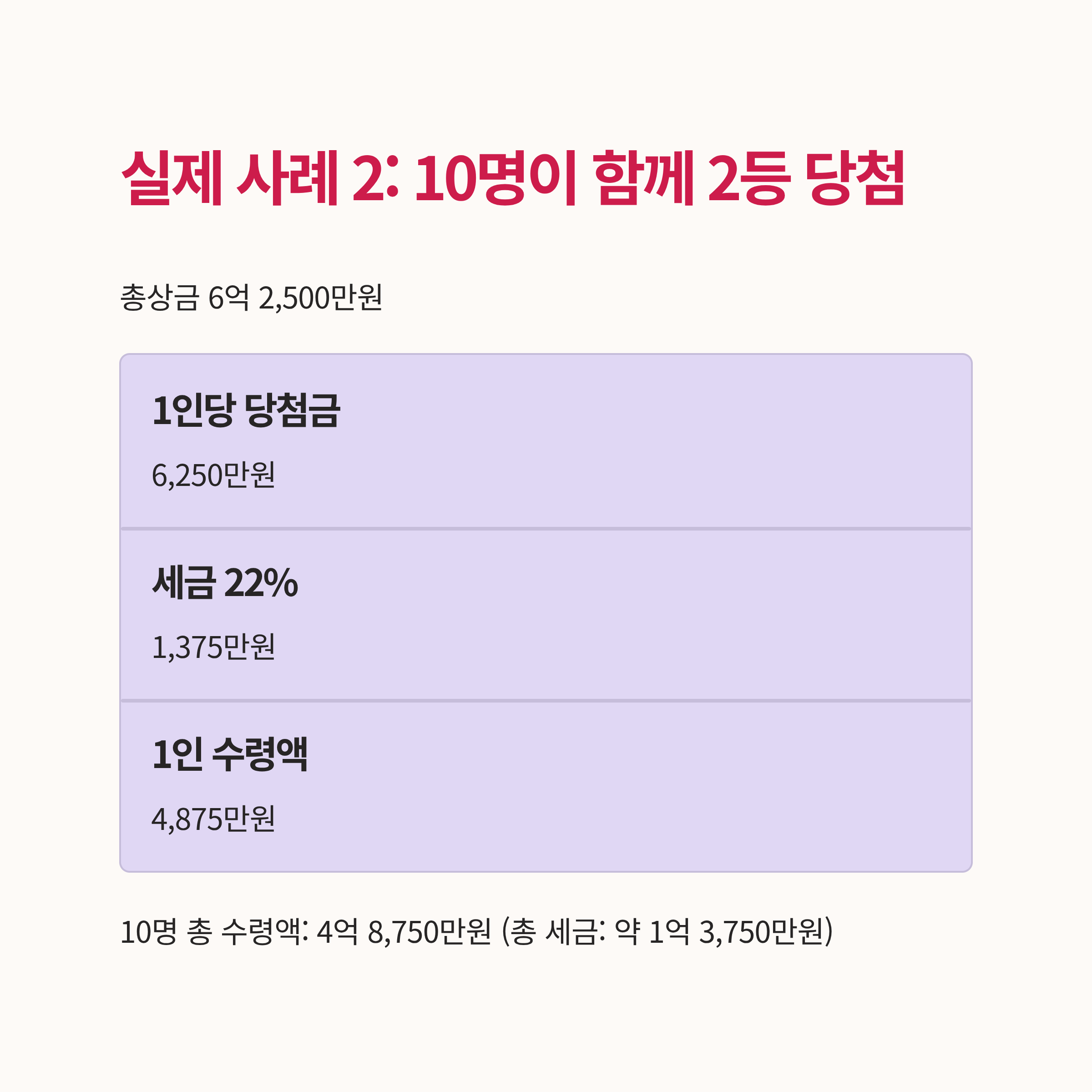 사례 2: 10명이 함께 2등 당첨 (총상금 6억 2,500만원)