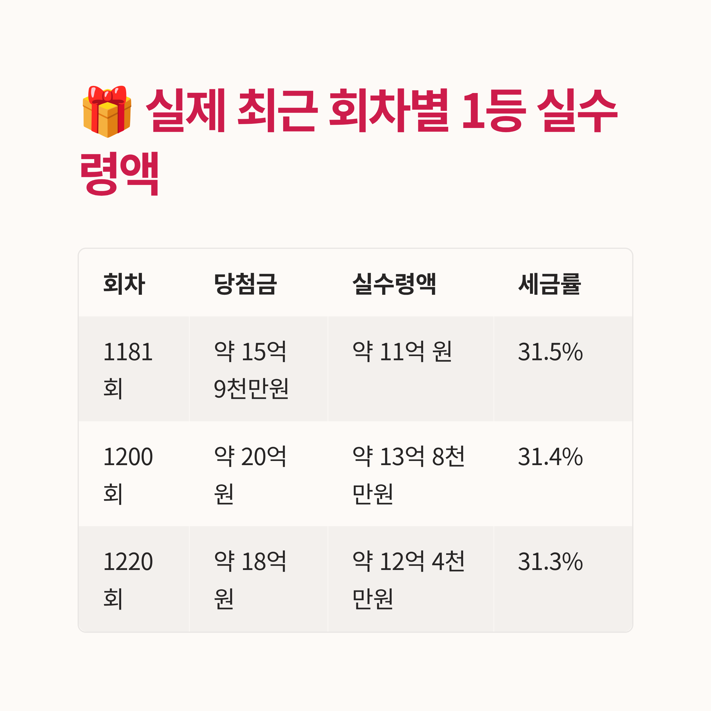 🎁 실제 최근 회차별 1등 실수령액 비교