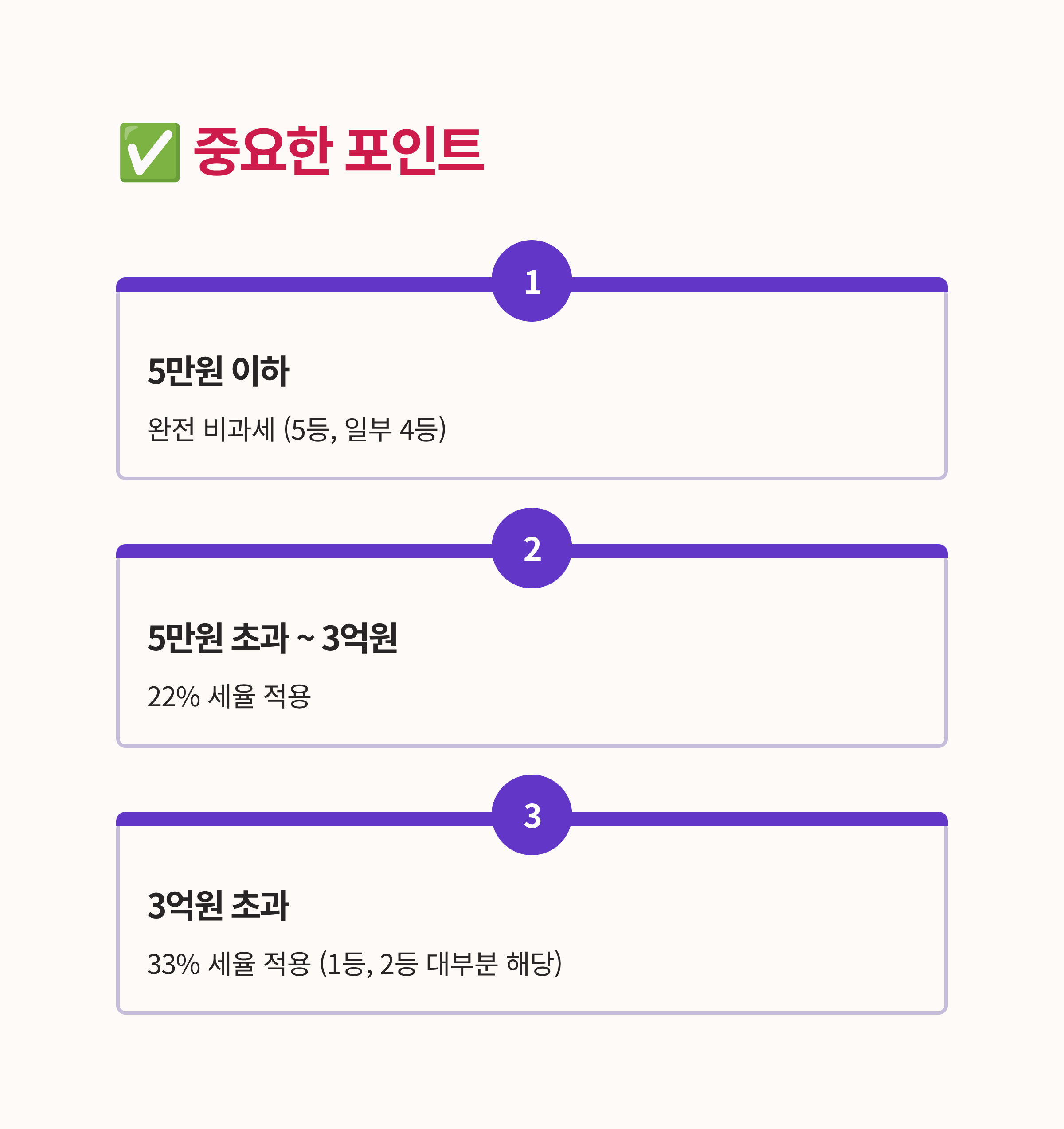- 5만원 이하: 완전 비과세 (5등, 일부 4등)