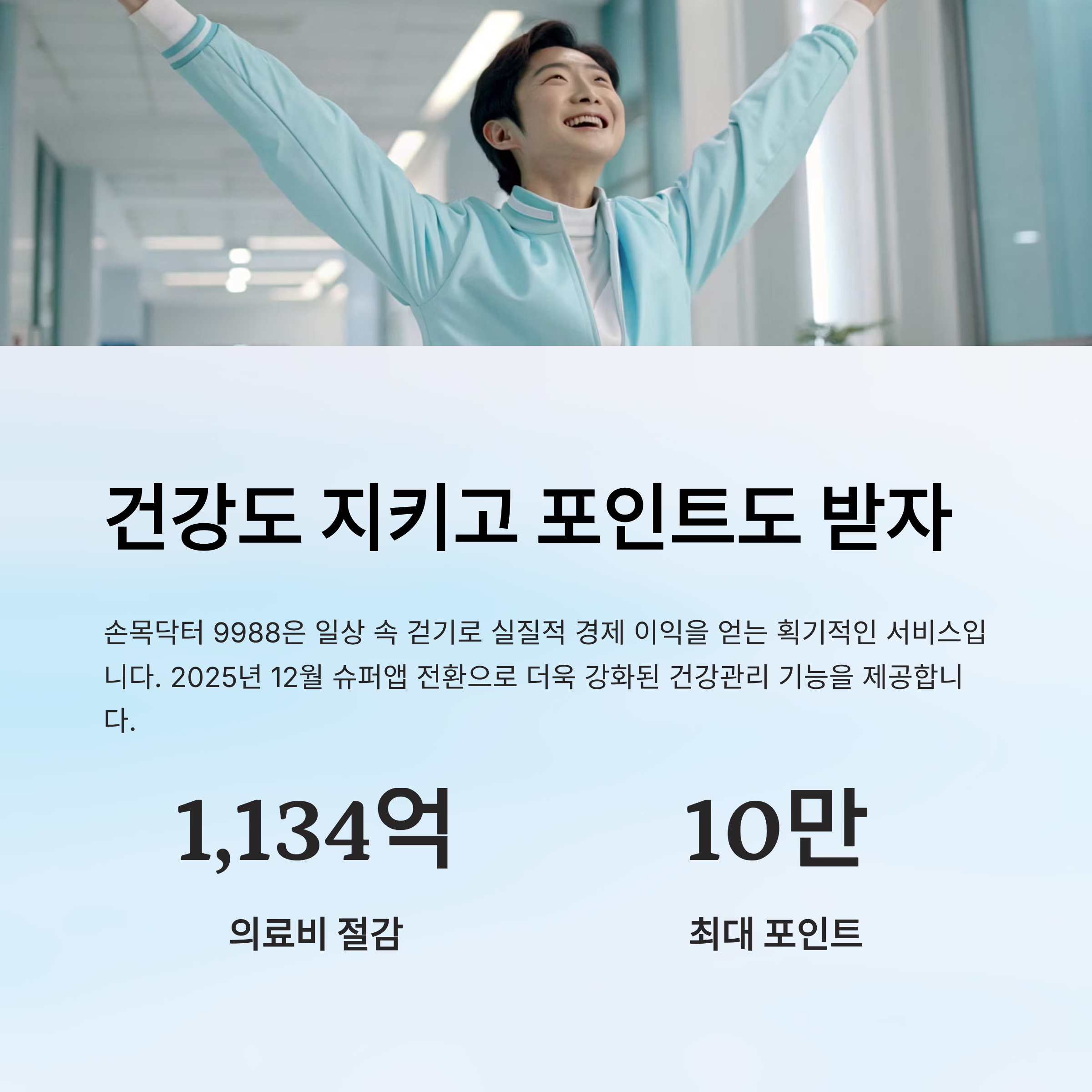특히 2025년 12월 1일 손목닥터 9988이 슈퍼앱으로 전면 개편되면서 더욱 강화된 혜택을 받을 수 있습니다.