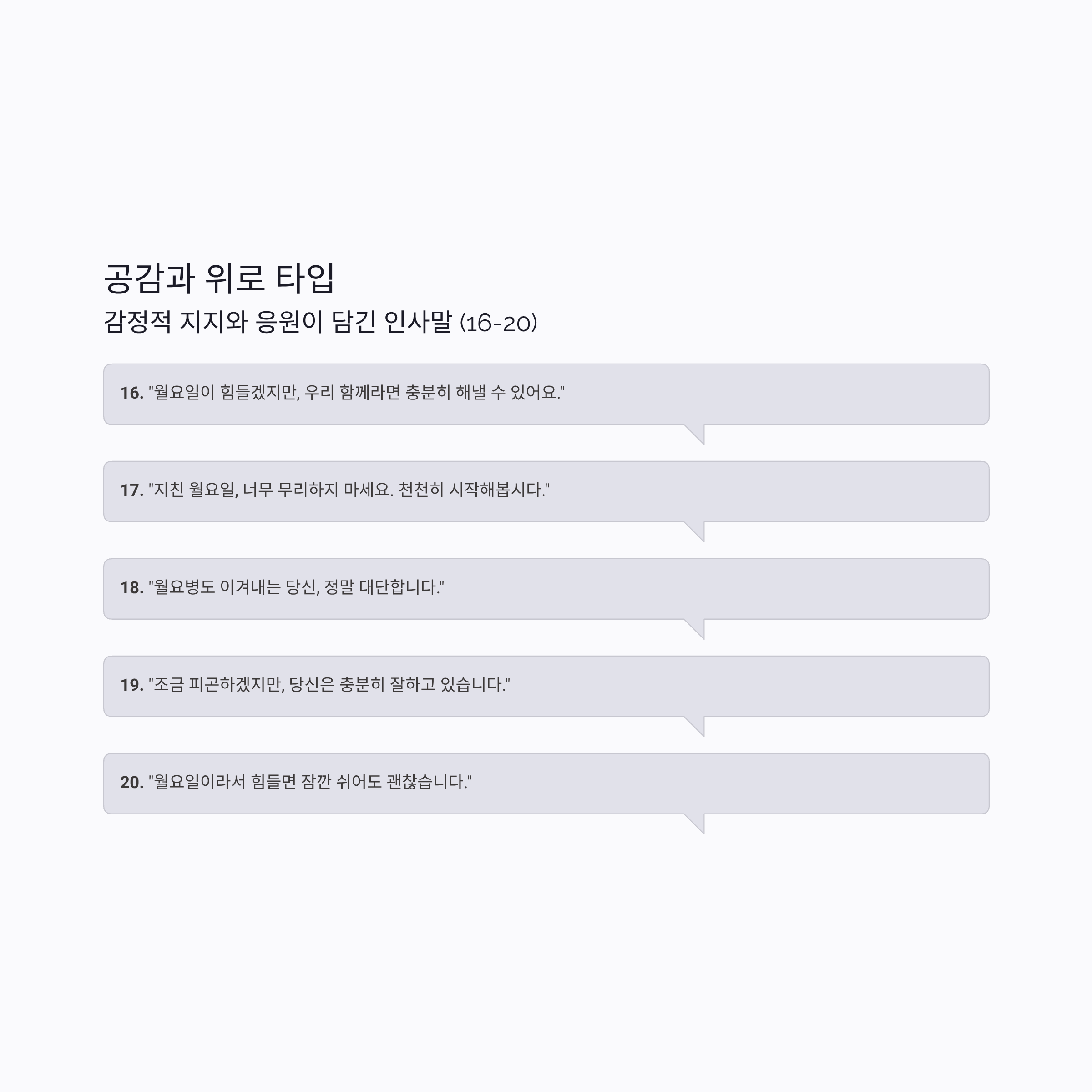 1️⃣6️⃣ "월요일이 힘들겠지만, 우리 함께라면 충분히 해낼 수 있어요."