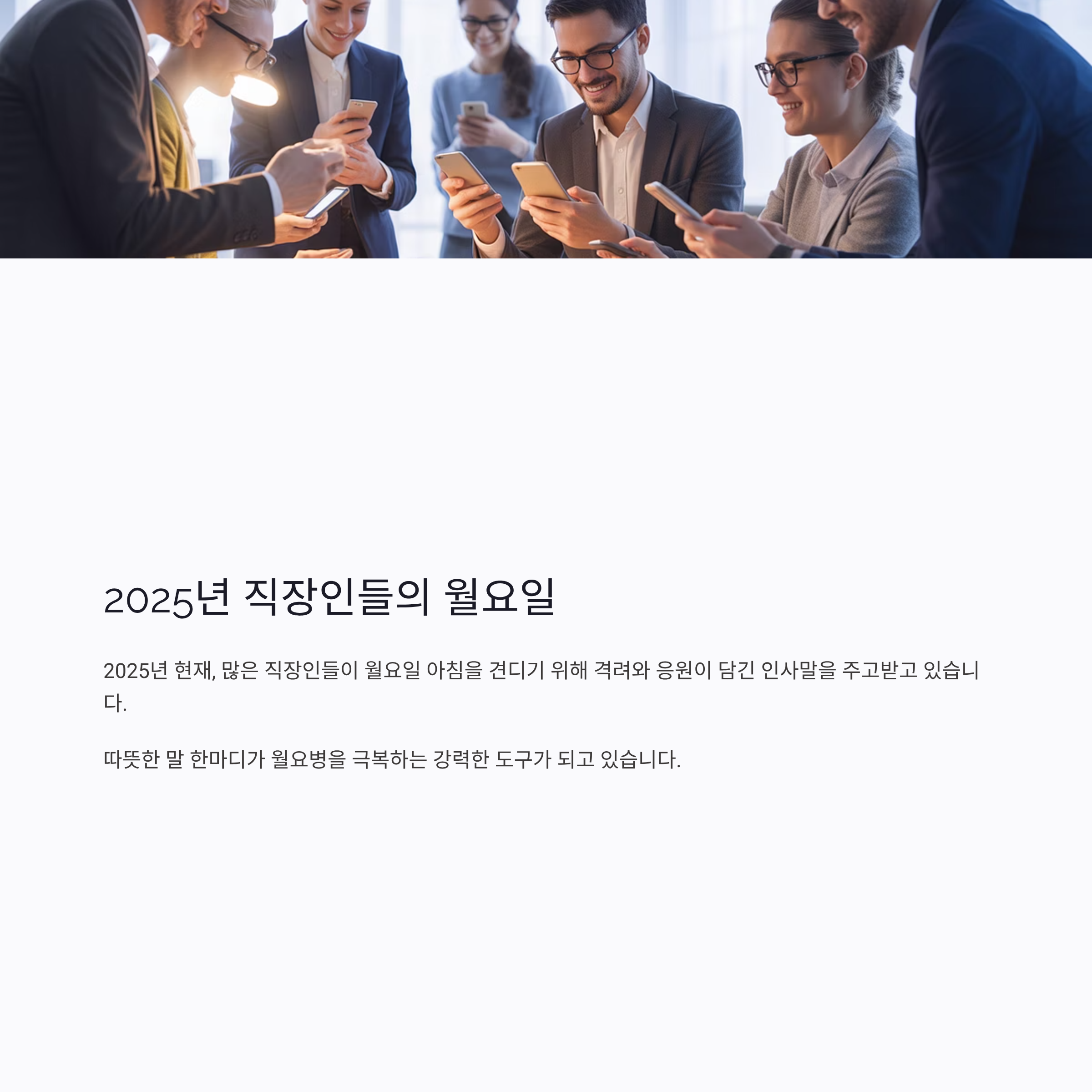 2025년 현재, 많은 직장인들이 월요일 아침을 견디기 위해 격려와 응원이 담긴 인사말을 주고받고 있습니다.