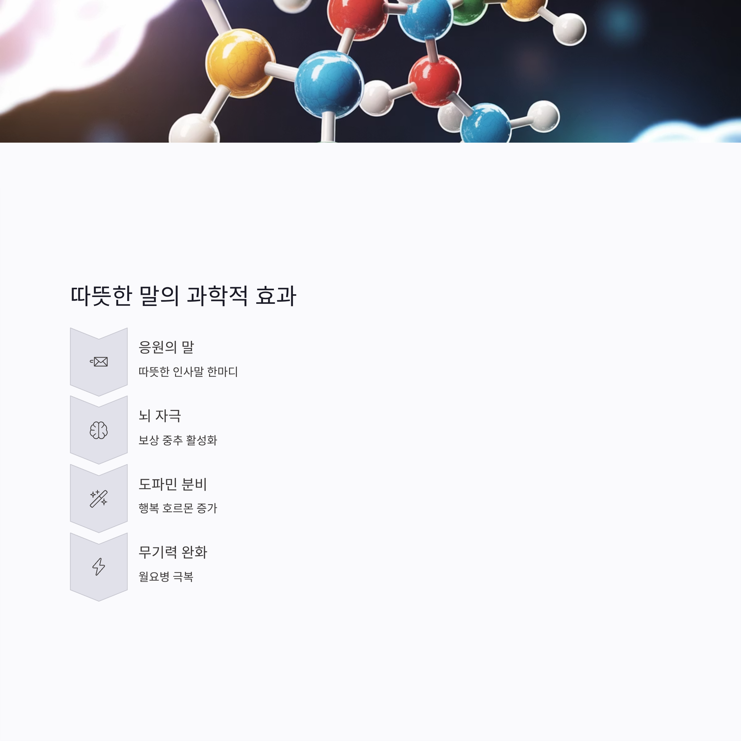따뜻한 응원의 말 한마디는 뇌의 보상 중추를 자극하여 도파민 분비를 증가시키고, 월요병으로 인한 무기력감을 상당 부분 완화할 수 있습니다.