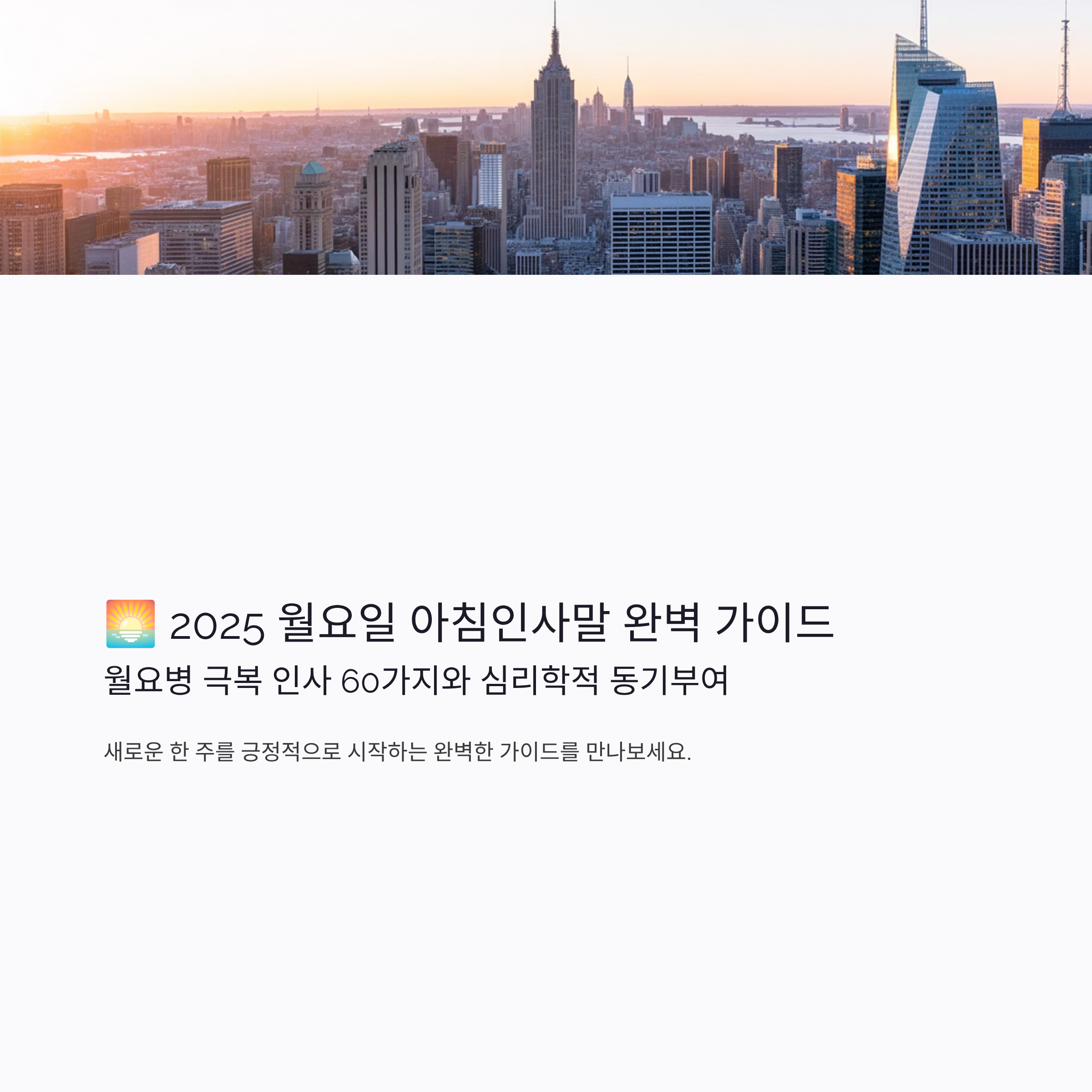 🌅 2025 월요일 아침인사말 완벽 가이드: 월요병 극복 인사 60가지와 심리학적 동기부여
