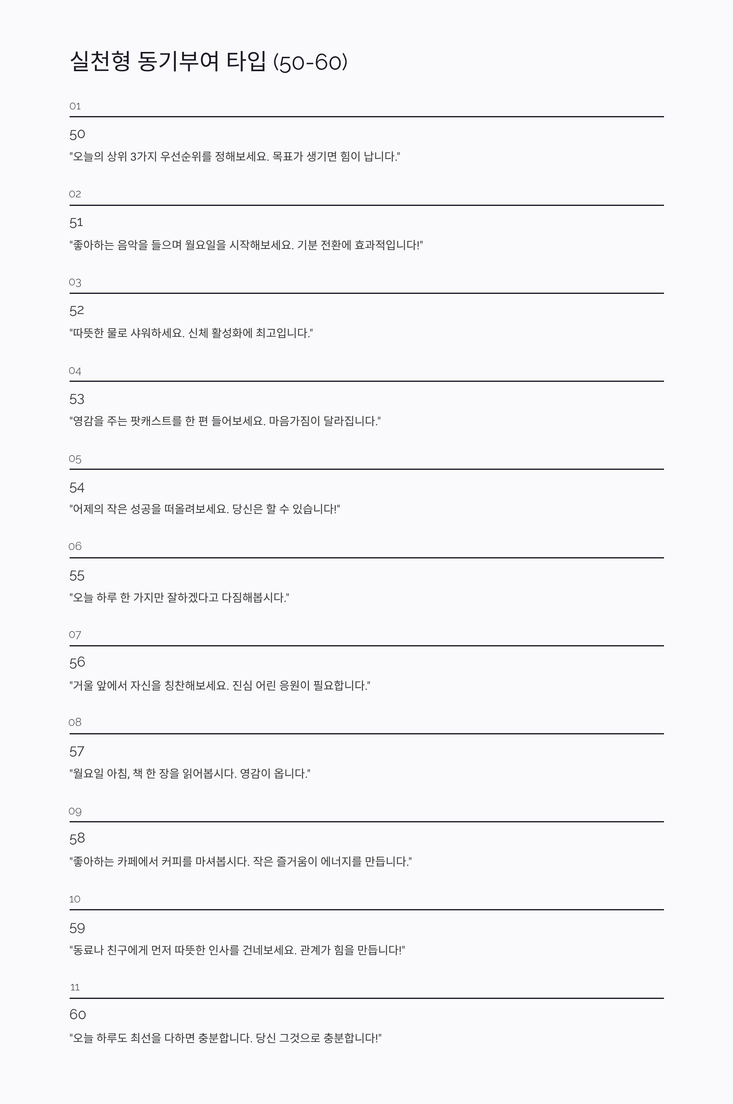 5️⃣0️⃣ "오늘의 상위 3가지 우선순위를 정해보세요. 목표가 생기면 힘이 납니다."