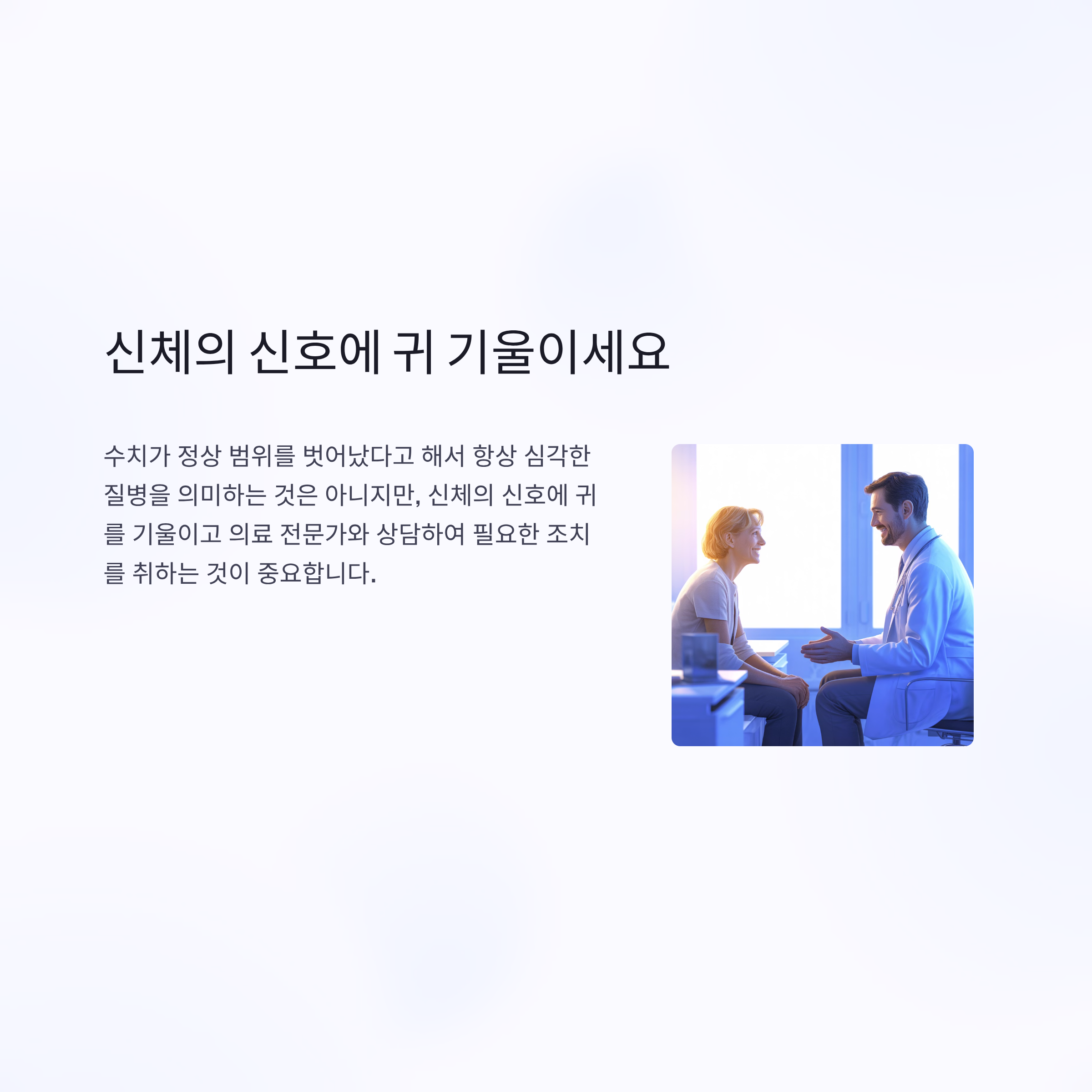 수치가 정상 범위를 벗어났다고 해서 항상 심각한 질병을 의미하는 것은 아니지만, 신체의 신호에 귀를 기울이고 의료 전문가와 상담하여 필요한 조치를 취하는 것이 중요합니다.