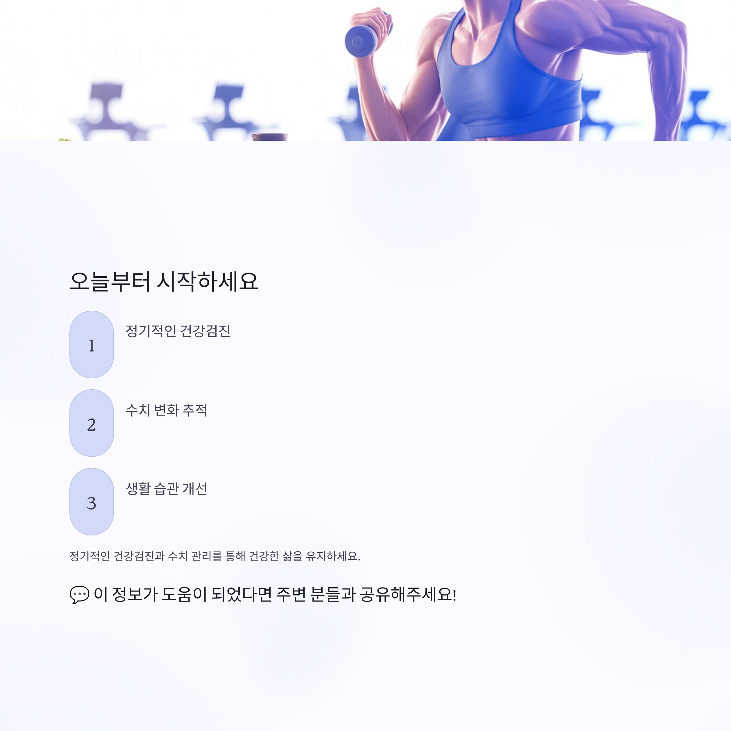 오늘부터 정기적인 건강검진과 수치 관리를 통해 건강한 삶을 유지하세요.