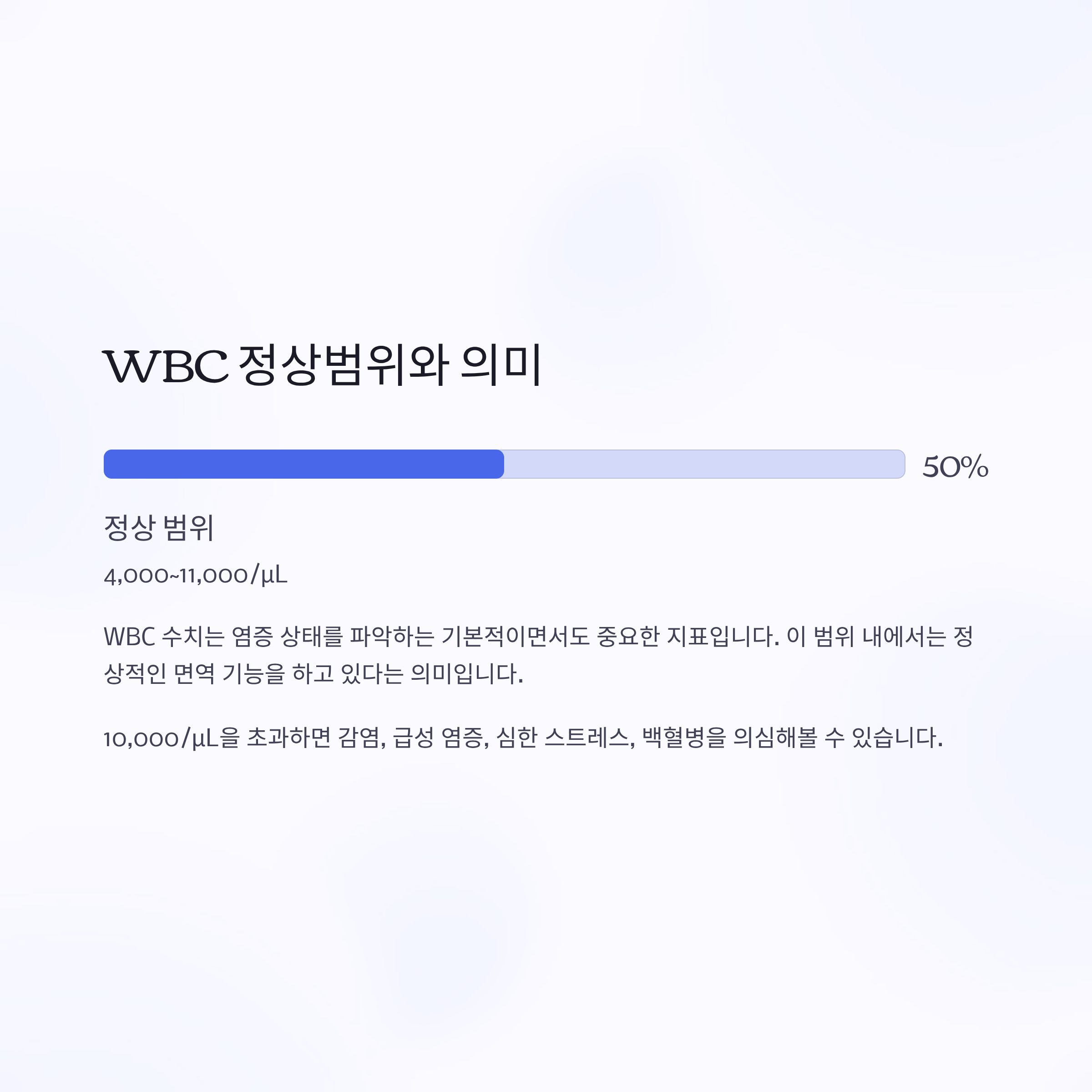 WBC 수치는 염증 상태를 파악하는 기본적이면서도 중요한 지표입니다.
