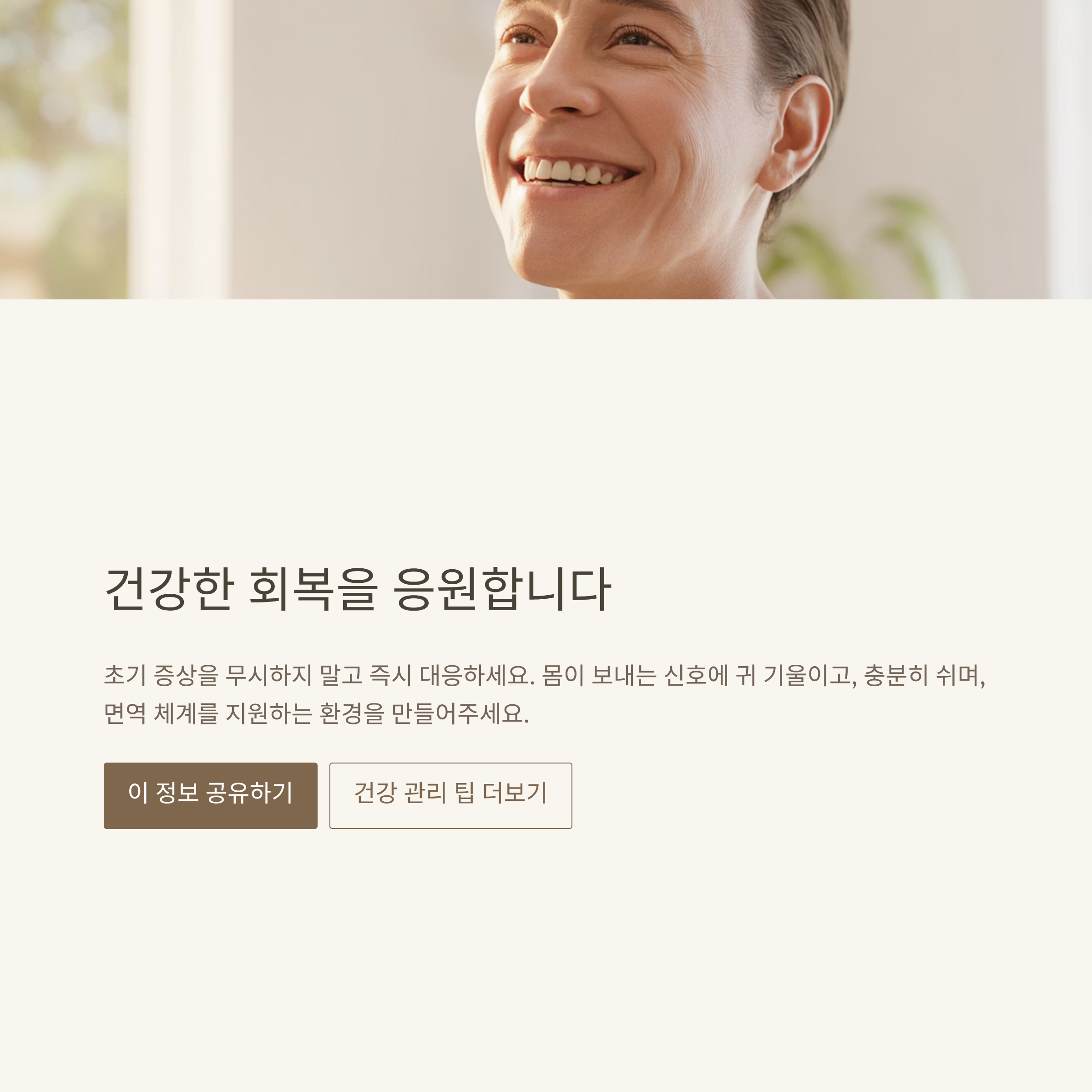몸이 보내는 신호에 귀 기울이고, 충분히 쉬며, 면역 체계를 지원하는 환경을 만들어주세요. 건강한 회복을 응원합니다.