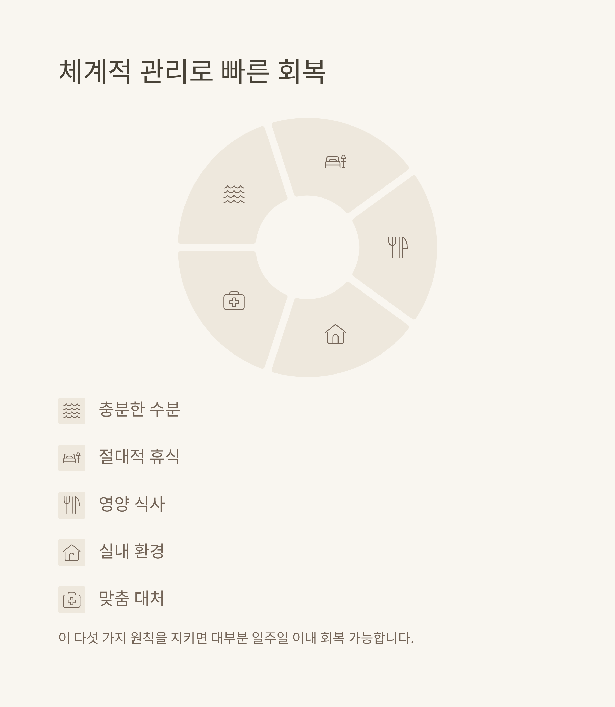 초기 증상을 무시하지 말고 즉시 대응하는 것이 회복 속도를 결정하는 가장 중요한 요인입니다.