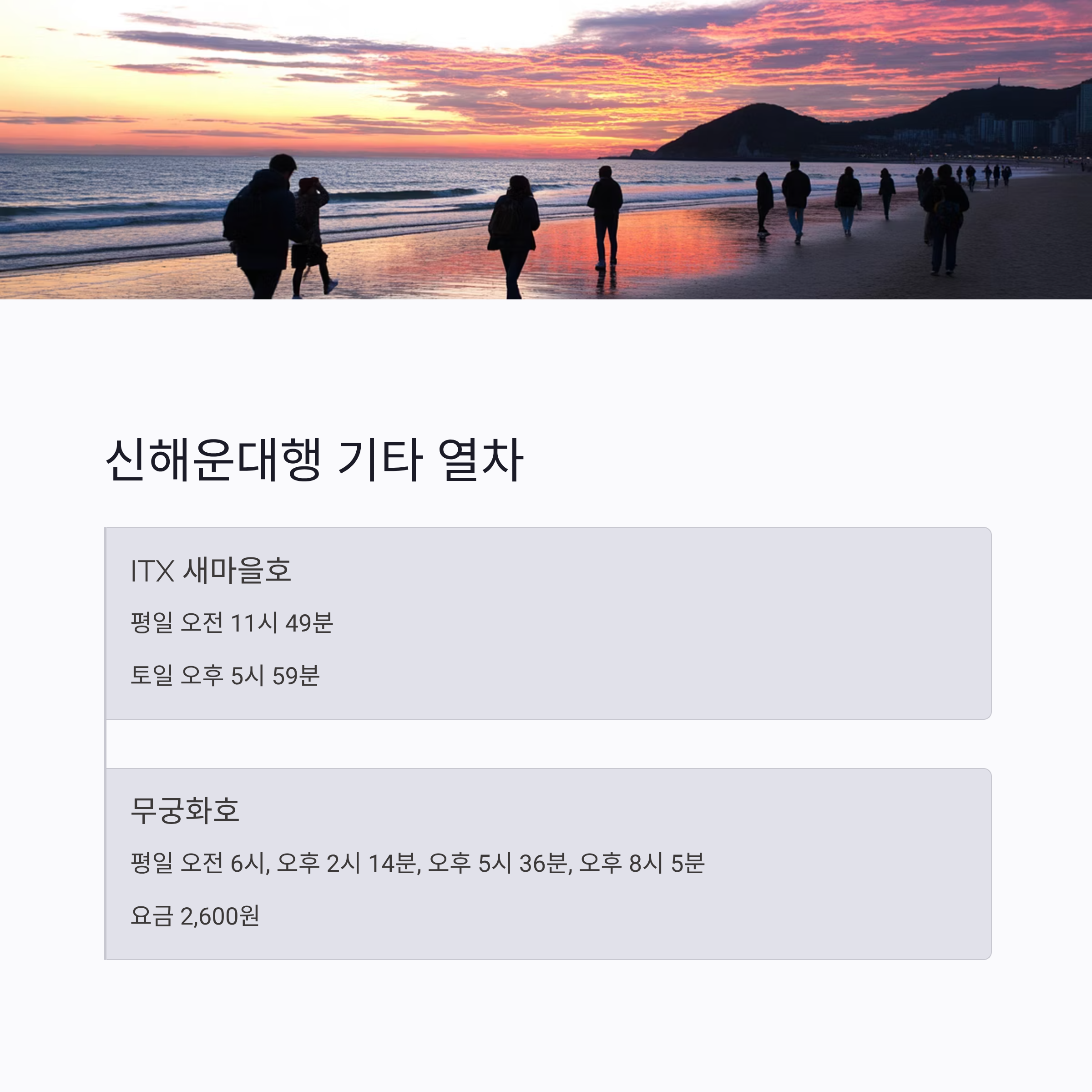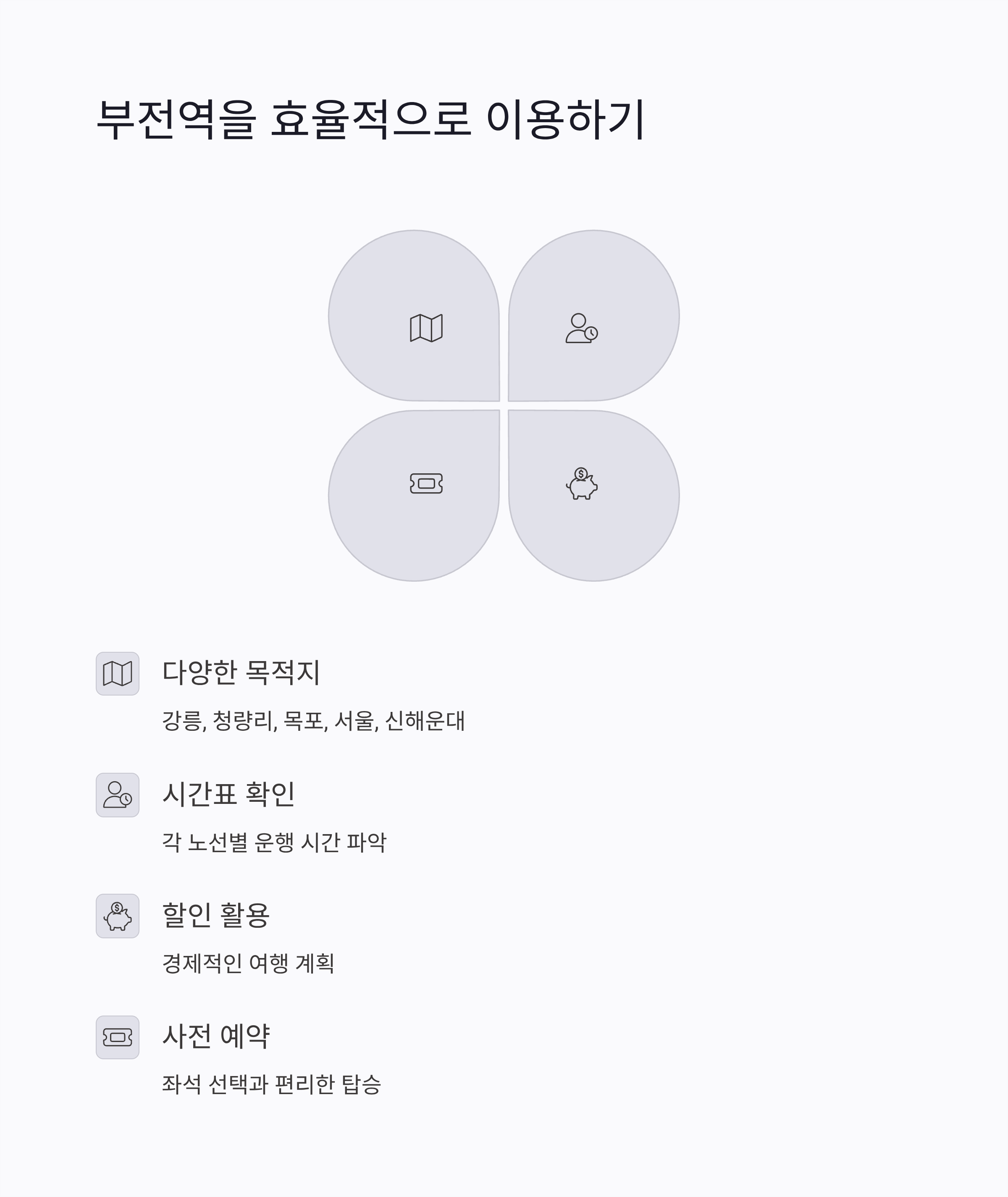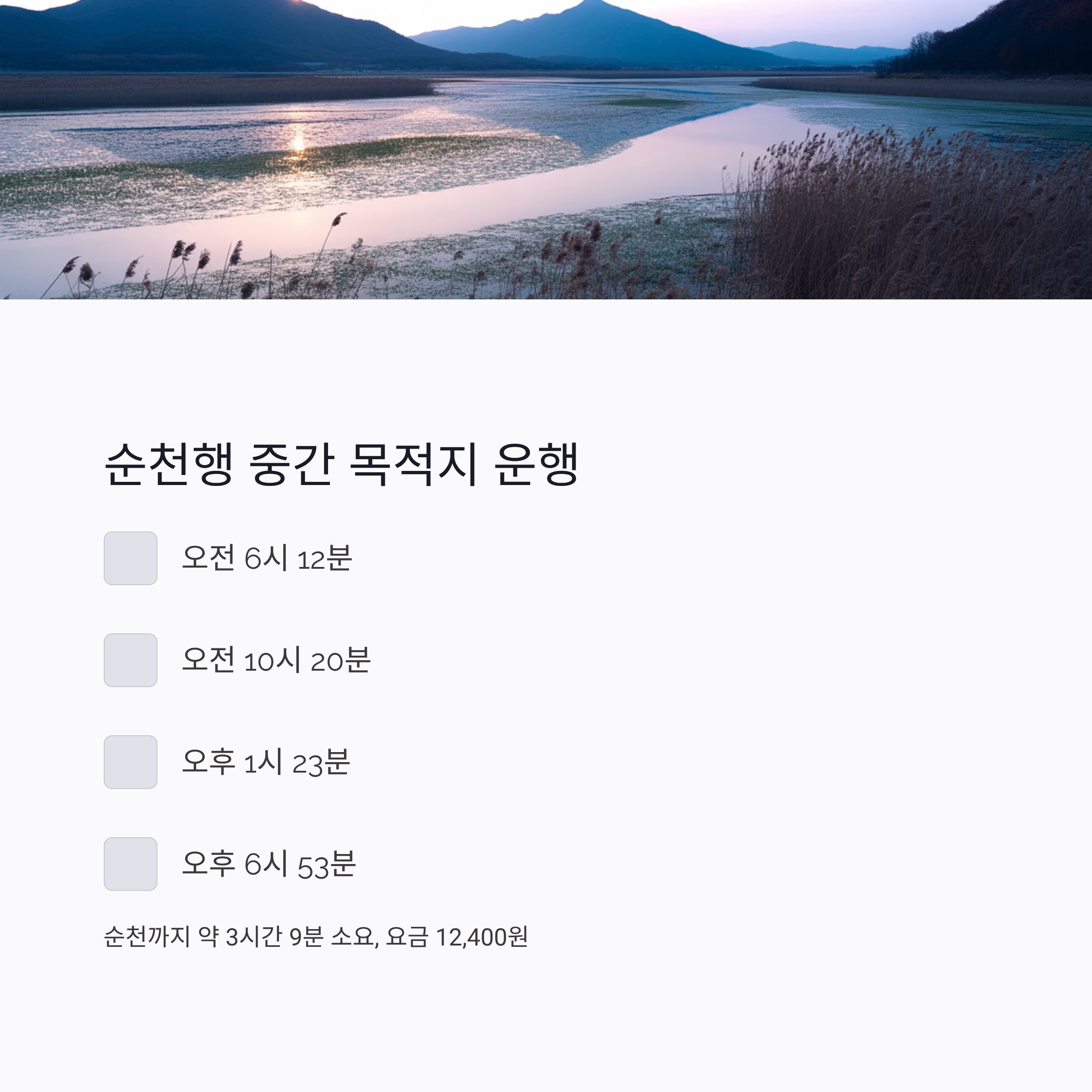 정확한 시간표 정보와 요금 안내, 예약 방법까지 모든 필요한 정보를 한눈에 확인하세요.