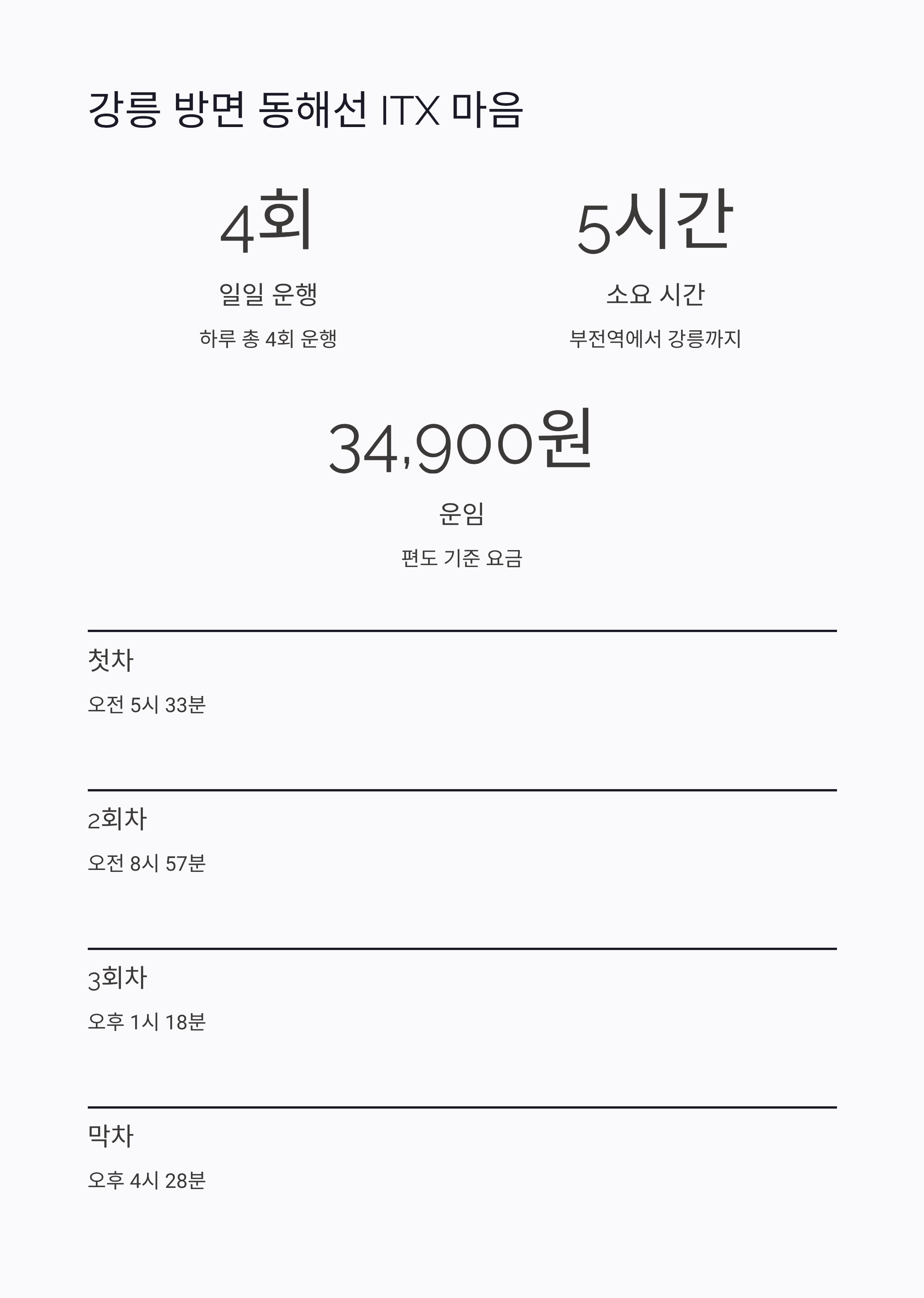 🚆 강릉 방면 동해선 ITX 마음 열차 시간표