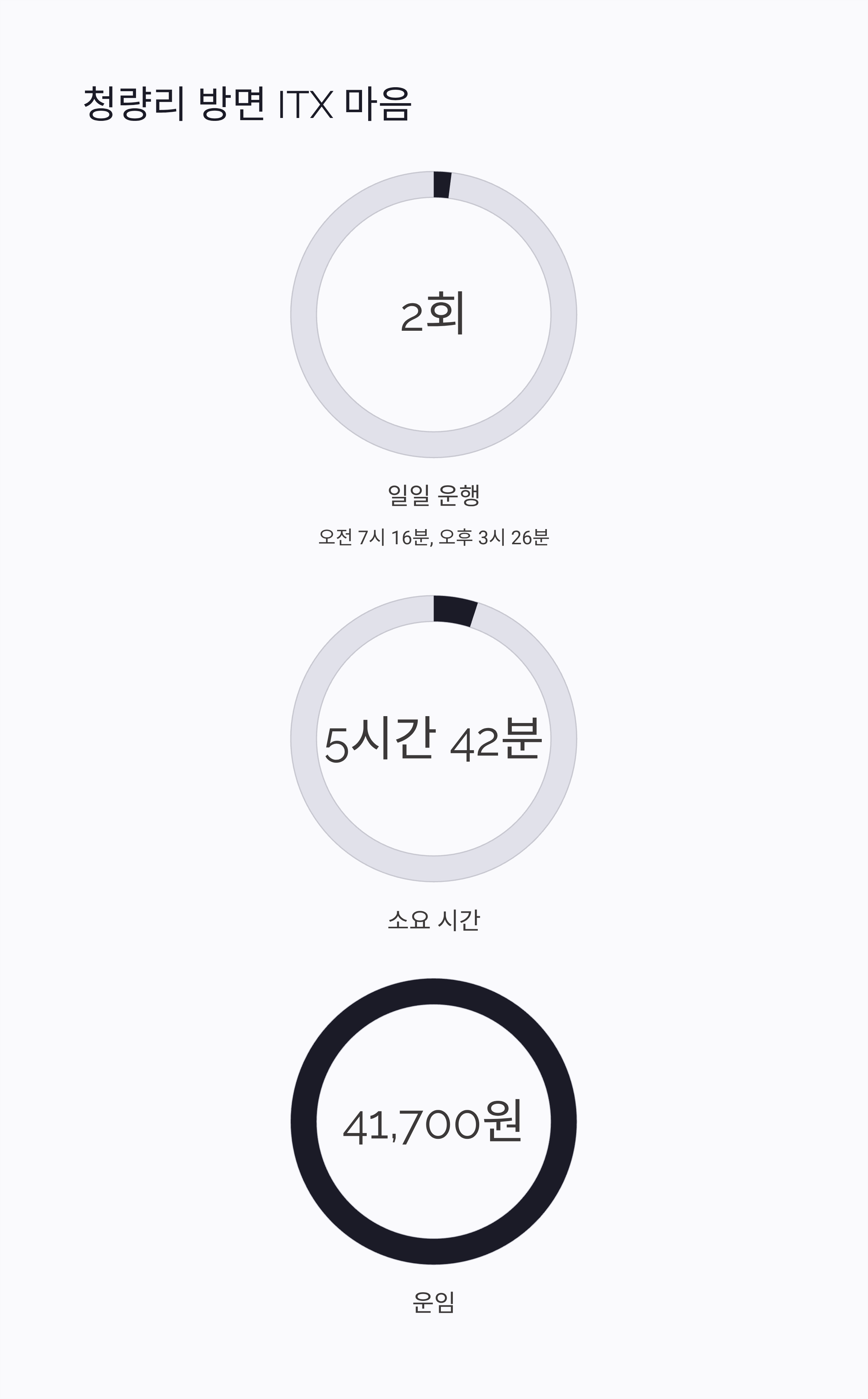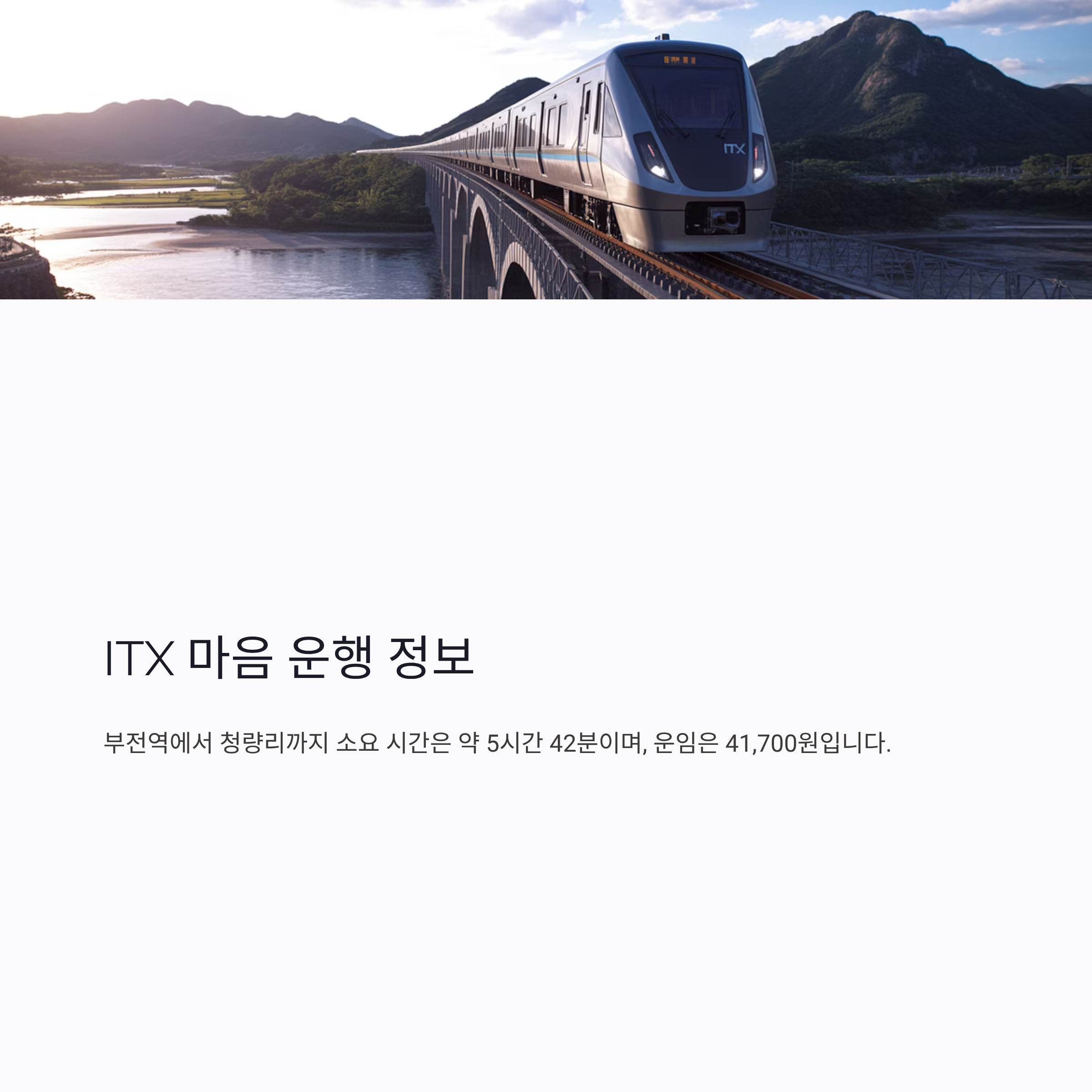 청량리로 향하는 또 다른 옵션으로는 ITX 마음 열차도 있습니다.