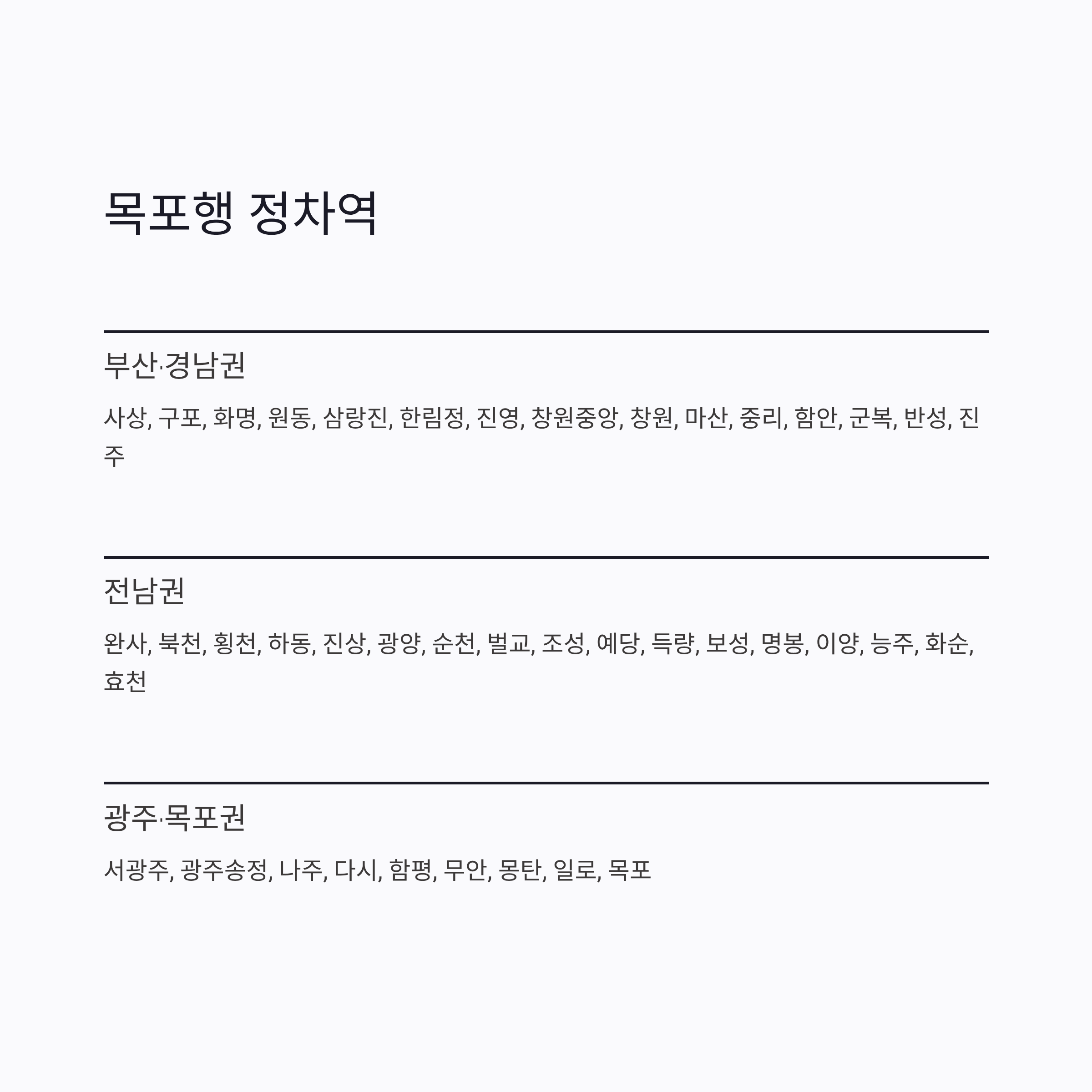 🚍 목포 방면 경전선 무궁화호 열차 시간표