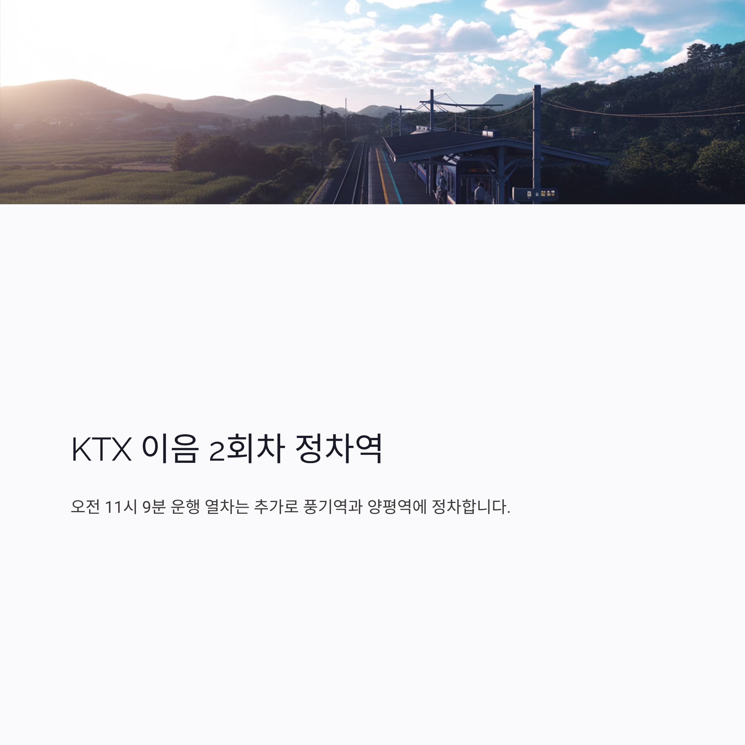 두 번째 열차인 오전 11시 9분 운행 열차는 추가로 풍기역과 양평역에 정차합니다.