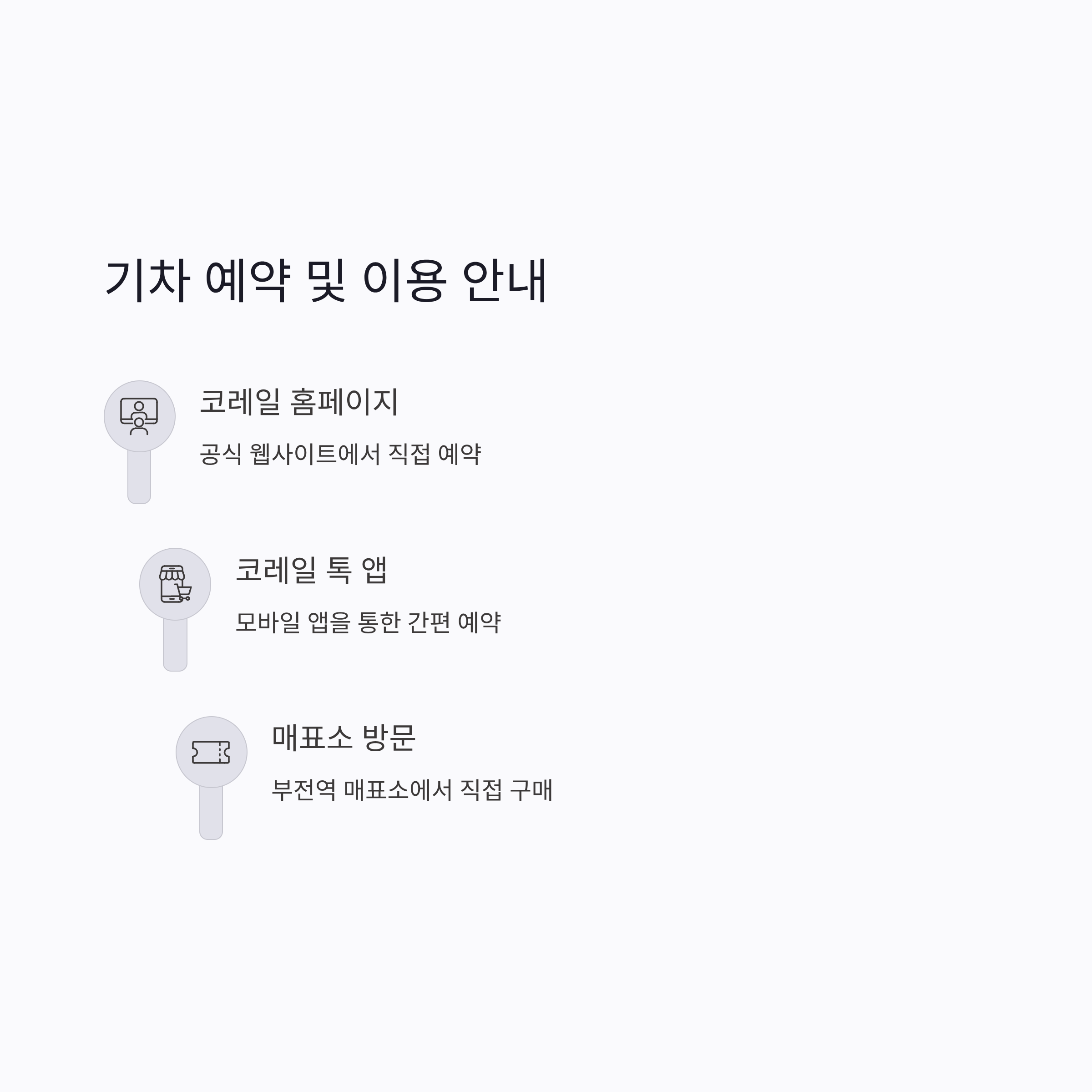 예약 시스템을 통해 미리 승차권을 구매하면 좌석 선택과 탑승 절차가 훨씬 더 편리합니다.