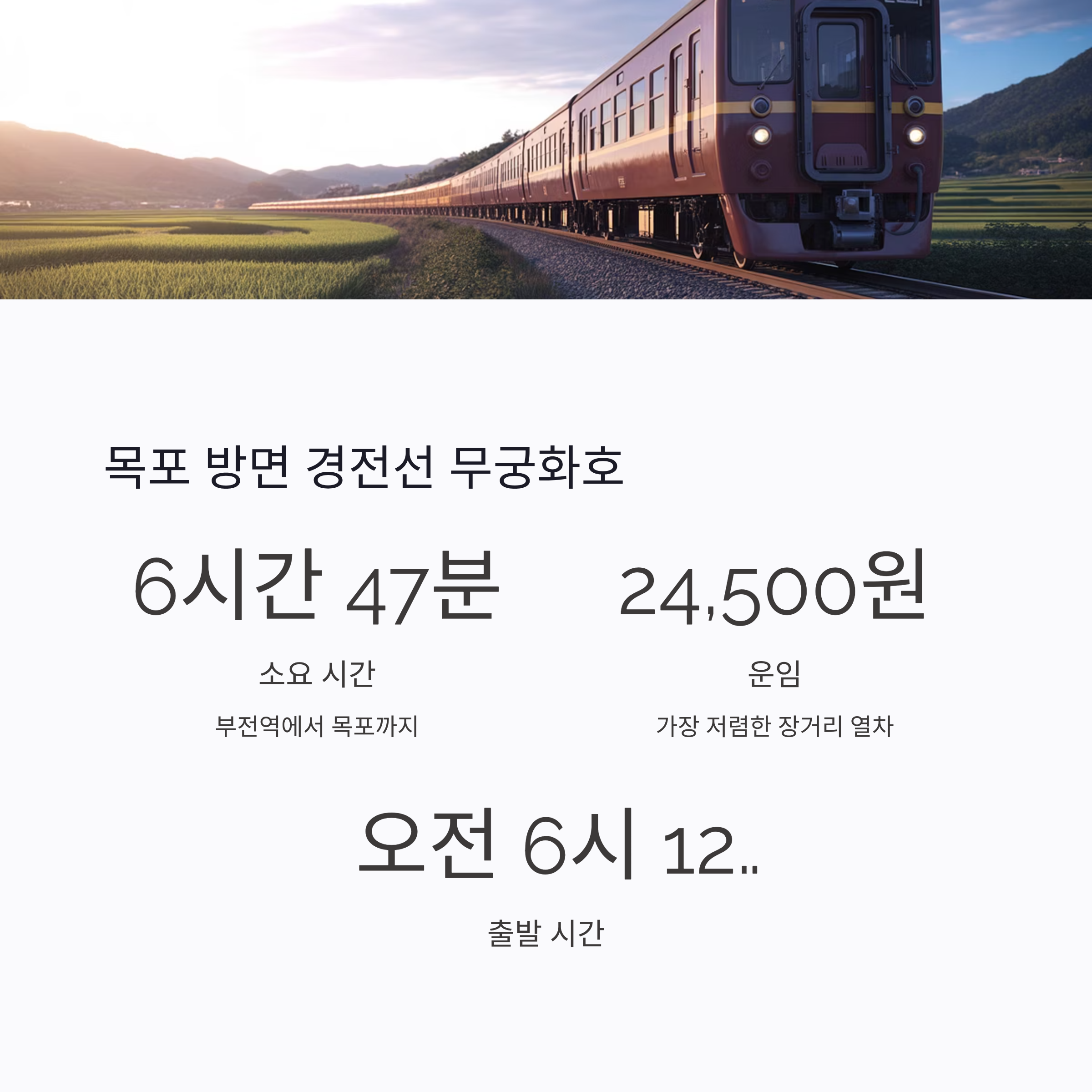 부전역에서 목포로 향하는 경전선 무궁화호 열차는 가장 저렴한 운임의 장거리 열차입니다.