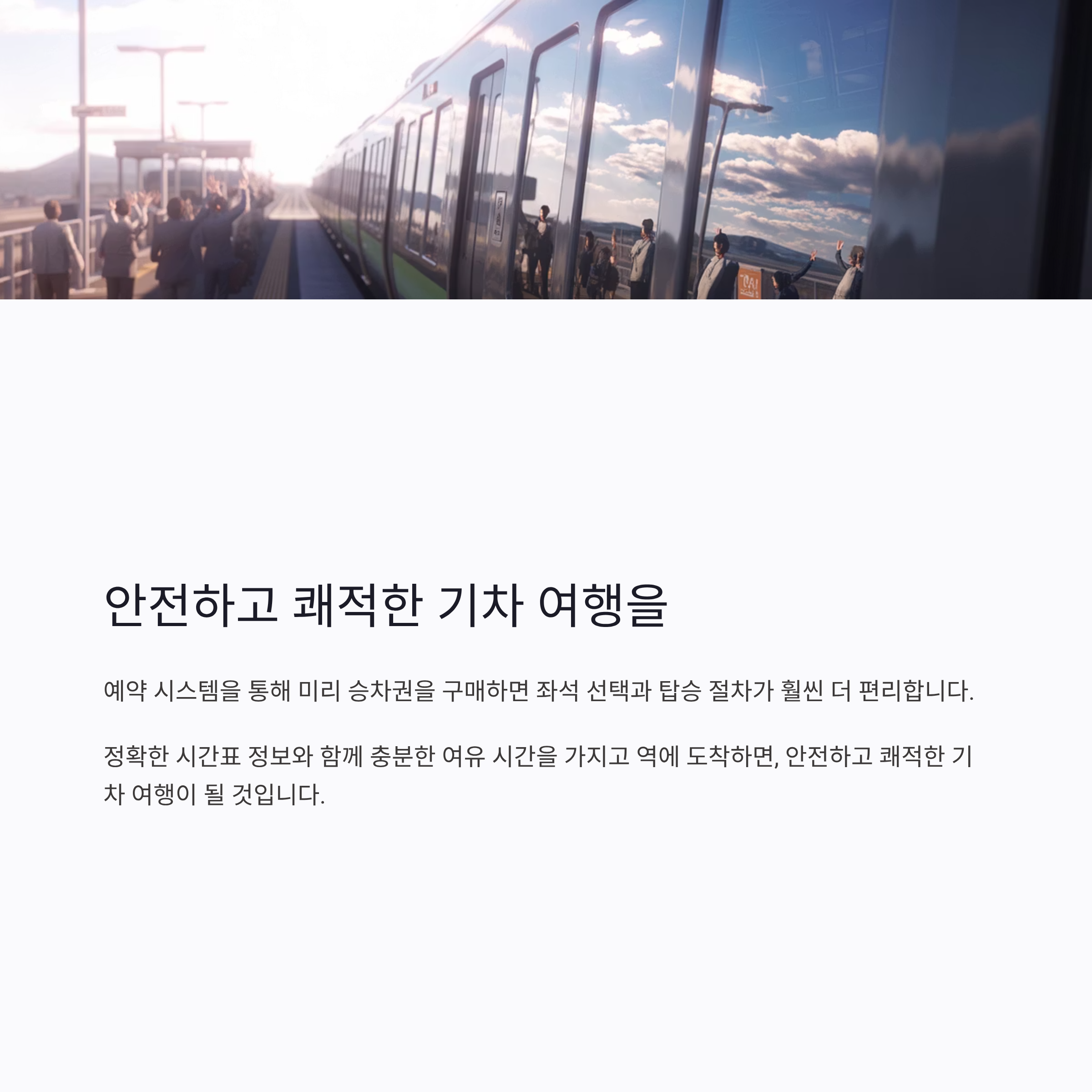 정확한 시간표 정보와 함께 충분한 여유 시간을 가지고 역에 도착하면, 안전하고 쾌적한 기차 여행이 될 것입니다.