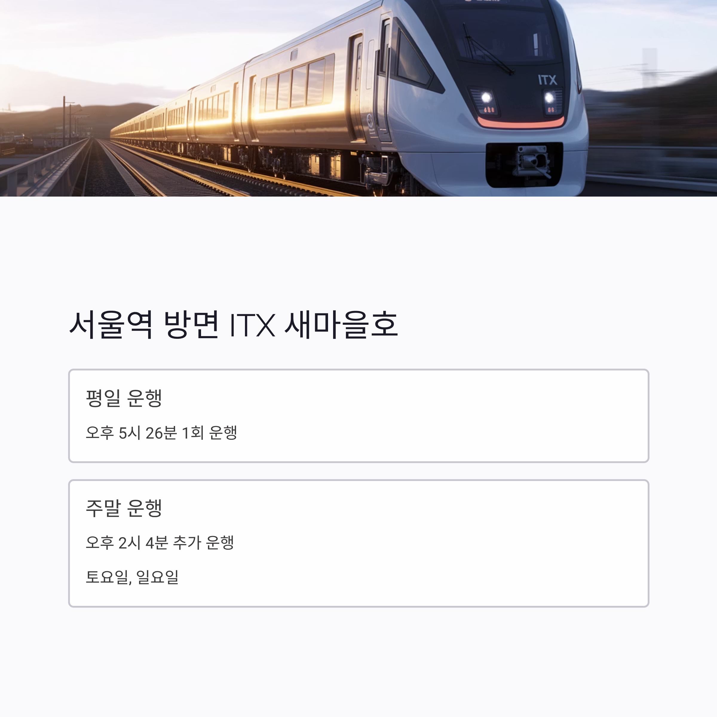 🚄 서울역 방면 경부선 ITX 새마을호 열차 시간표