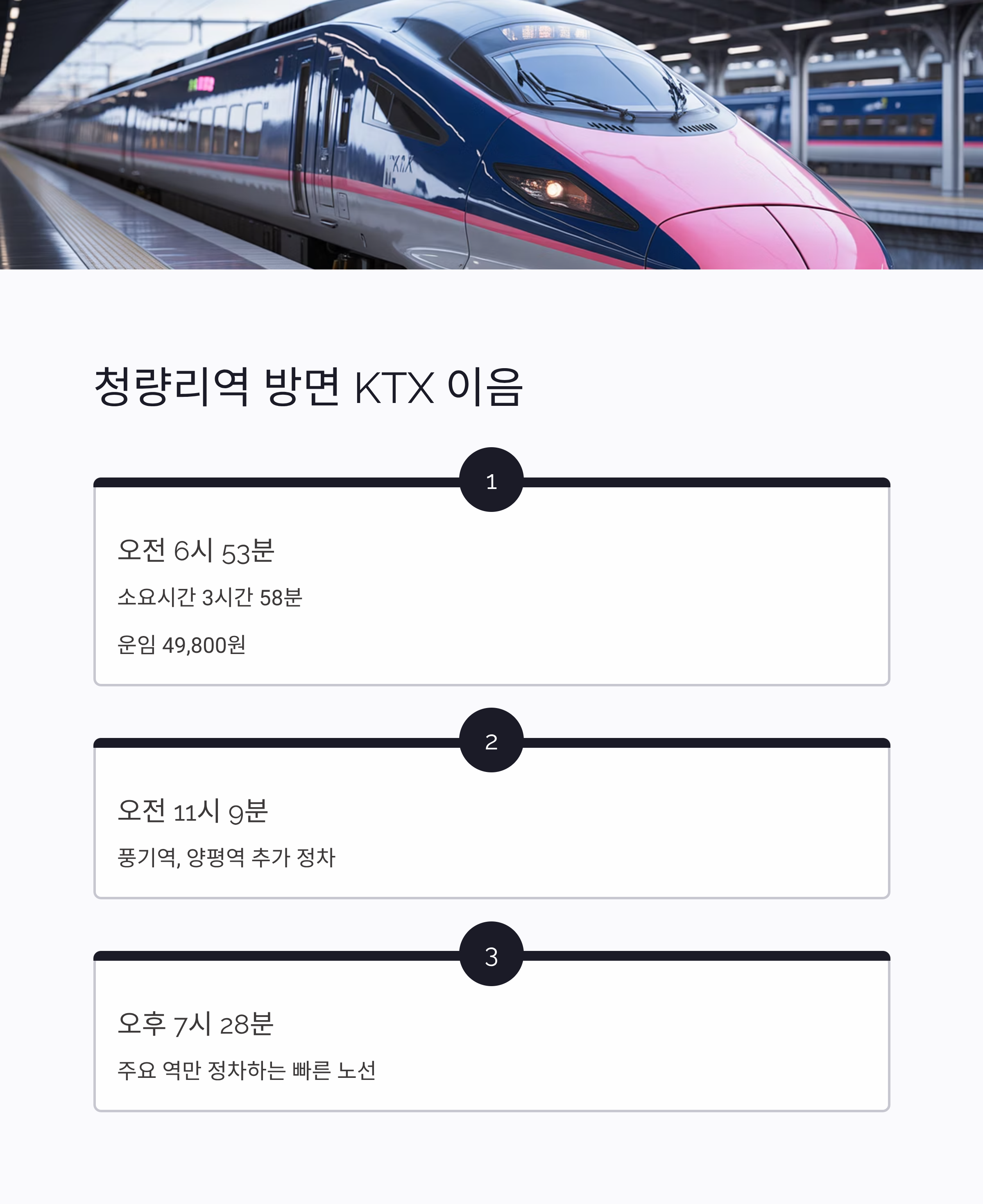🚊 청량리역 방면 KTX 이음 열차 시간표