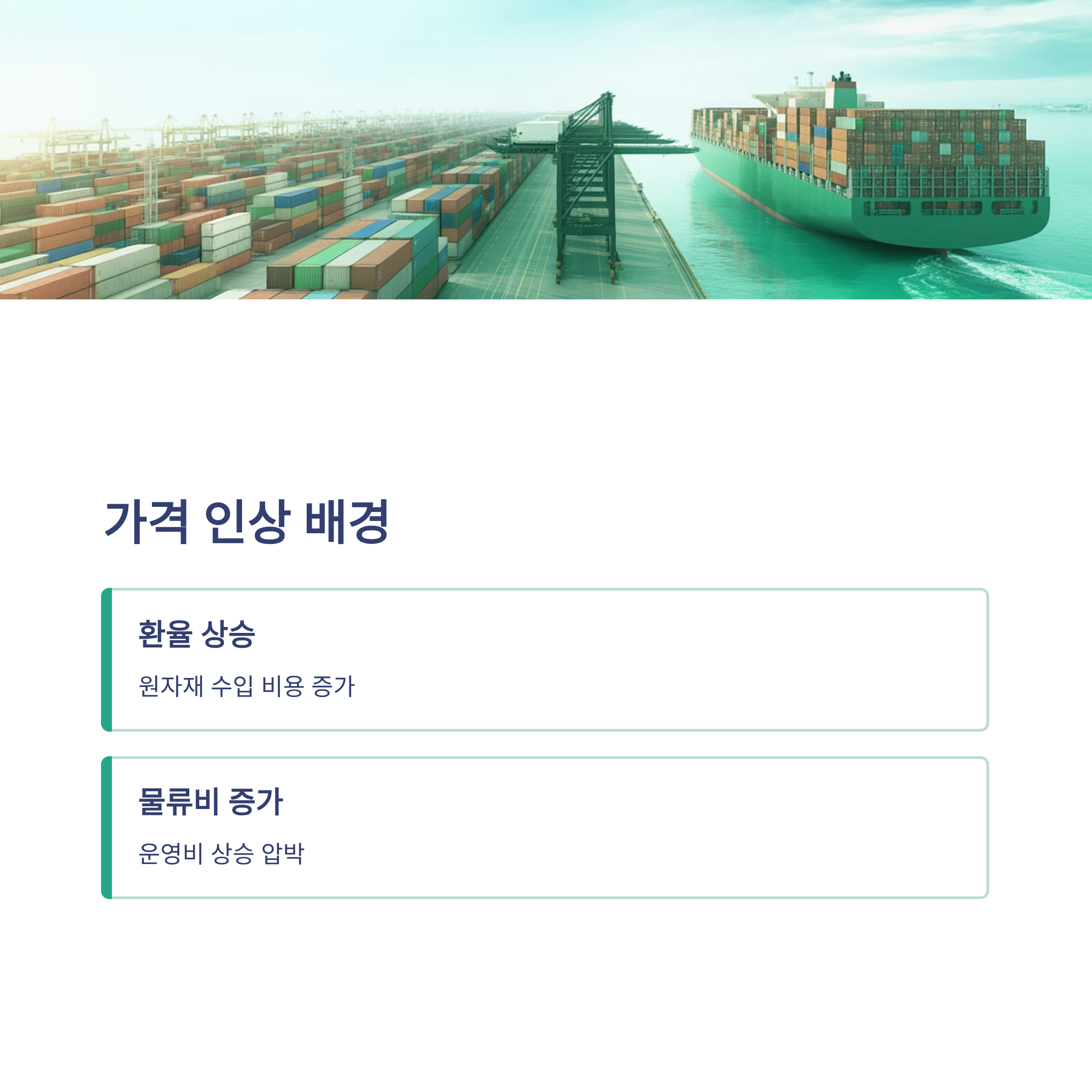 환율 상승과 물류비 증가가 주요 인상 사유로 지목되고 있습니다.
