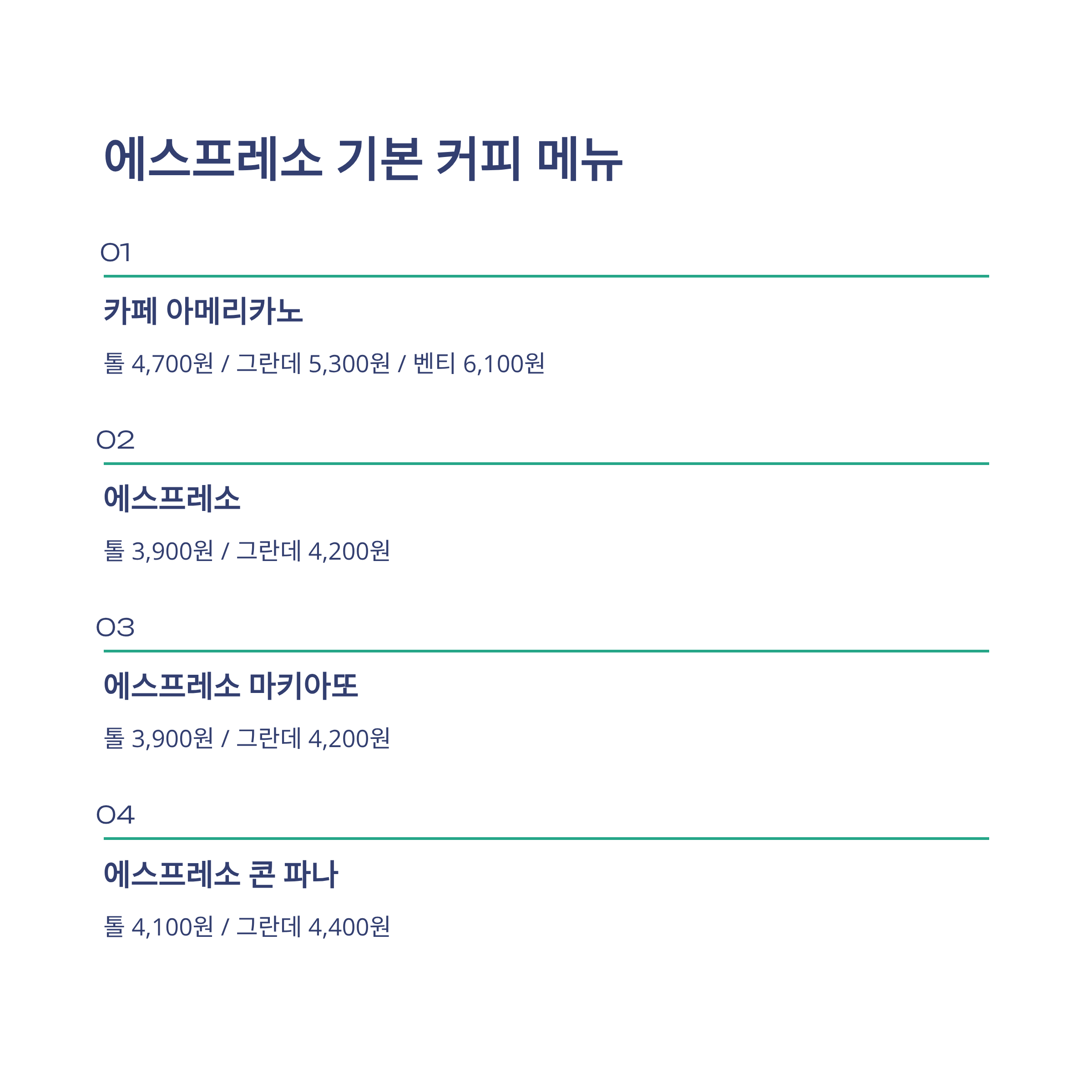 2️⃣ 🍵 에스프레소 기본 커피 메뉴 가격