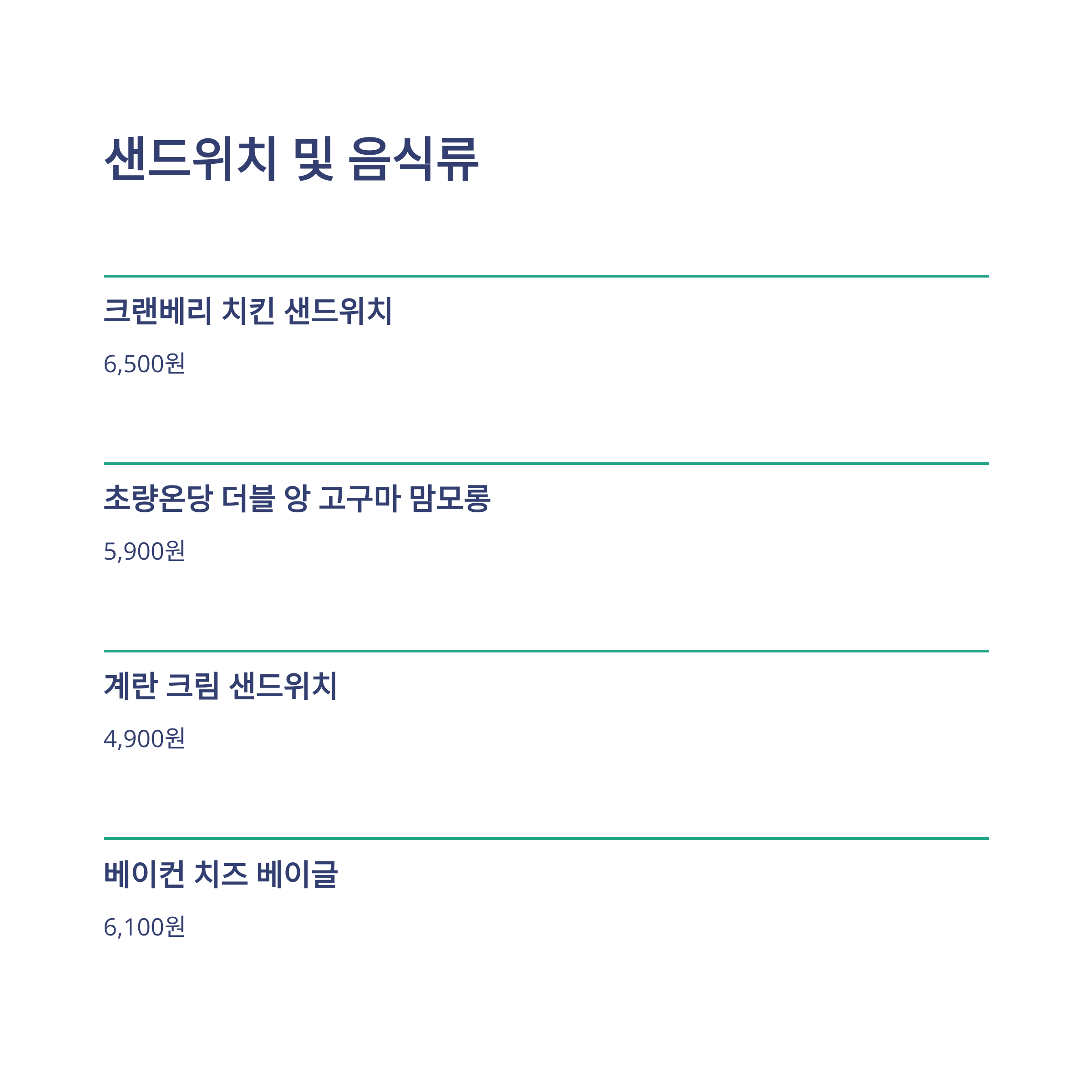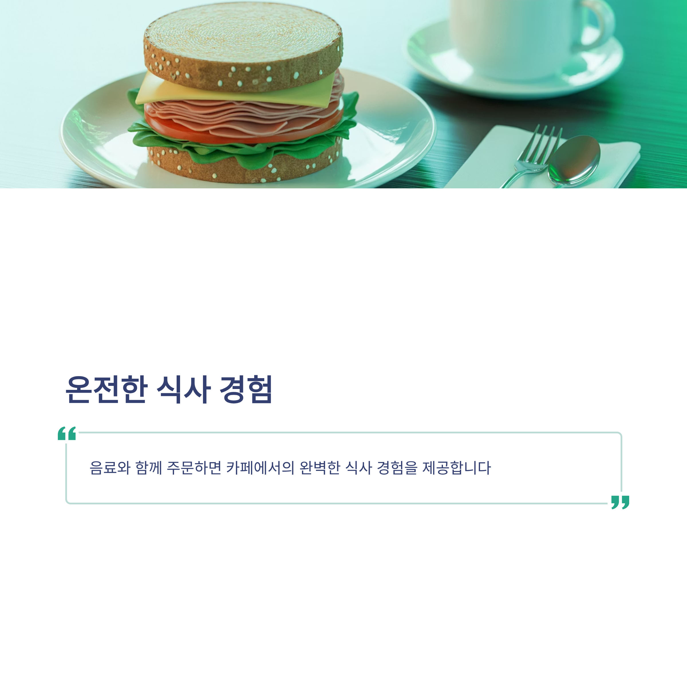 이들 음식은 모두 음료와 함께 주문하면 카페에서의 온전한 식사 경험을 제공합니다.