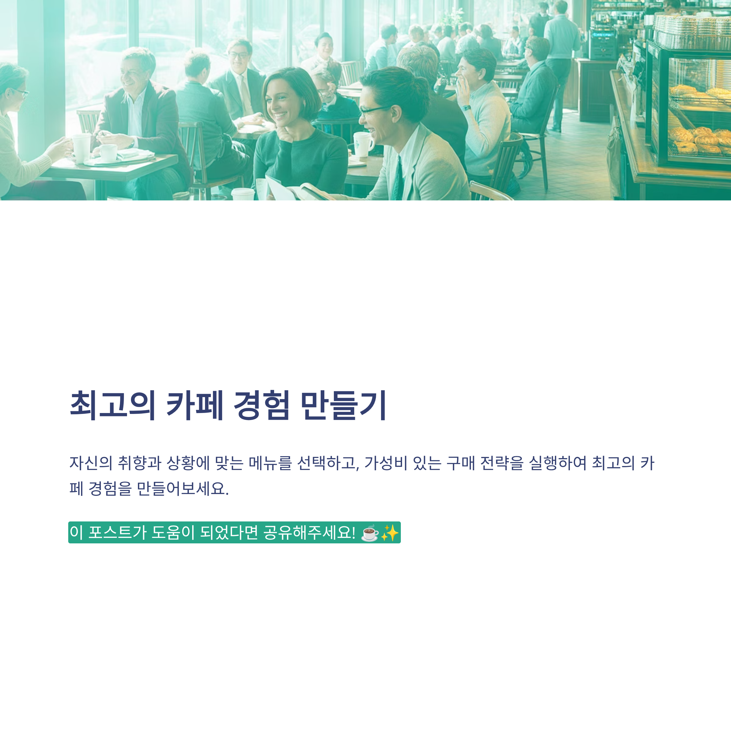 자신의 취향과 상황에 맞는 메뉴를 선택하고, 가성비 있는 구매 전략을 실행하여 최고의 카페 경험을 만들어보세요.