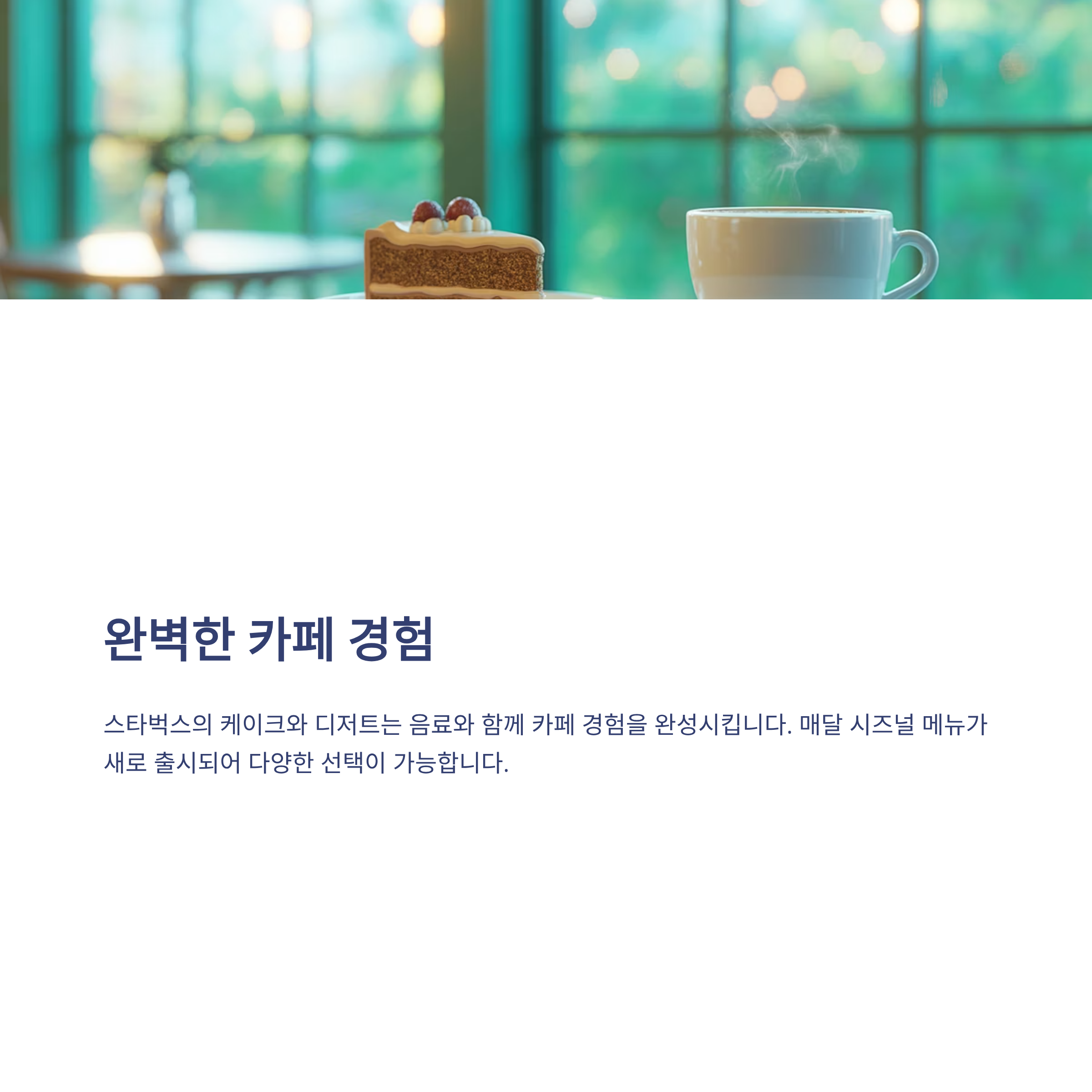 스타벅스의 케이크와 디저트는 음료와 함께 카페 경험을 완성시키는 중요한 메뉴입니다.