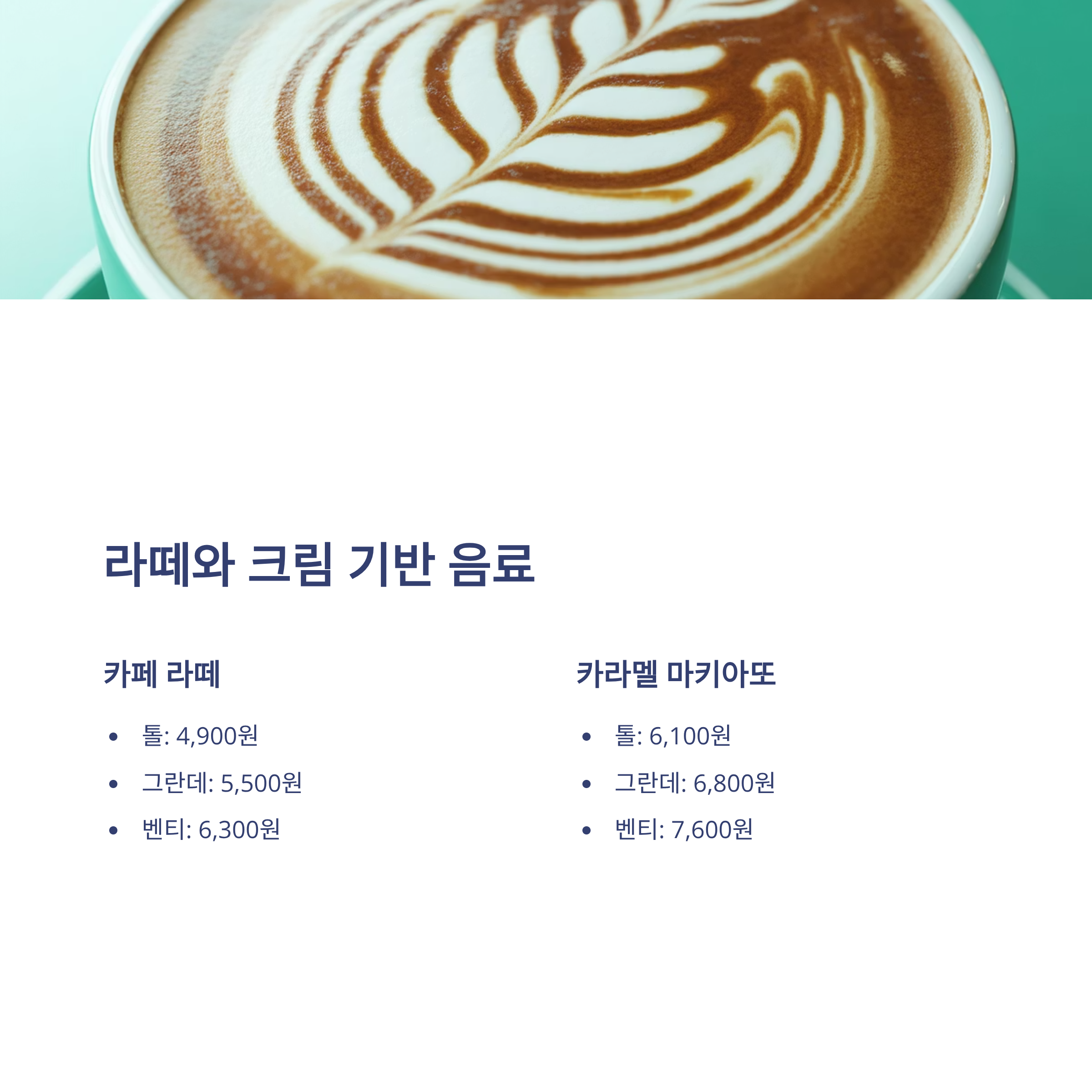 3️⃣ 🥛 라떼와 크림 기반 음료 가격