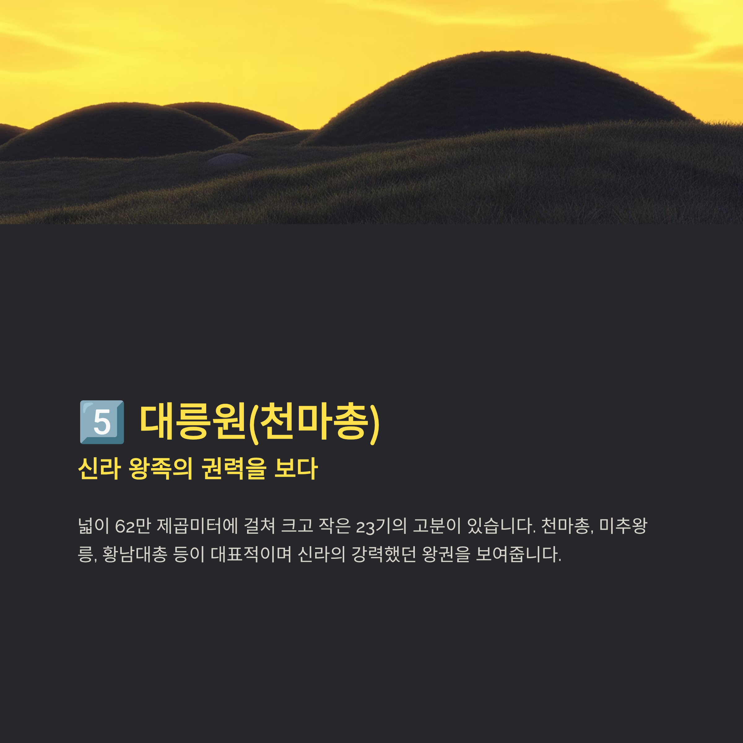 5️⃣ ⚱️ 대릉원(천마총): 신라 왕족의 권력을 보다