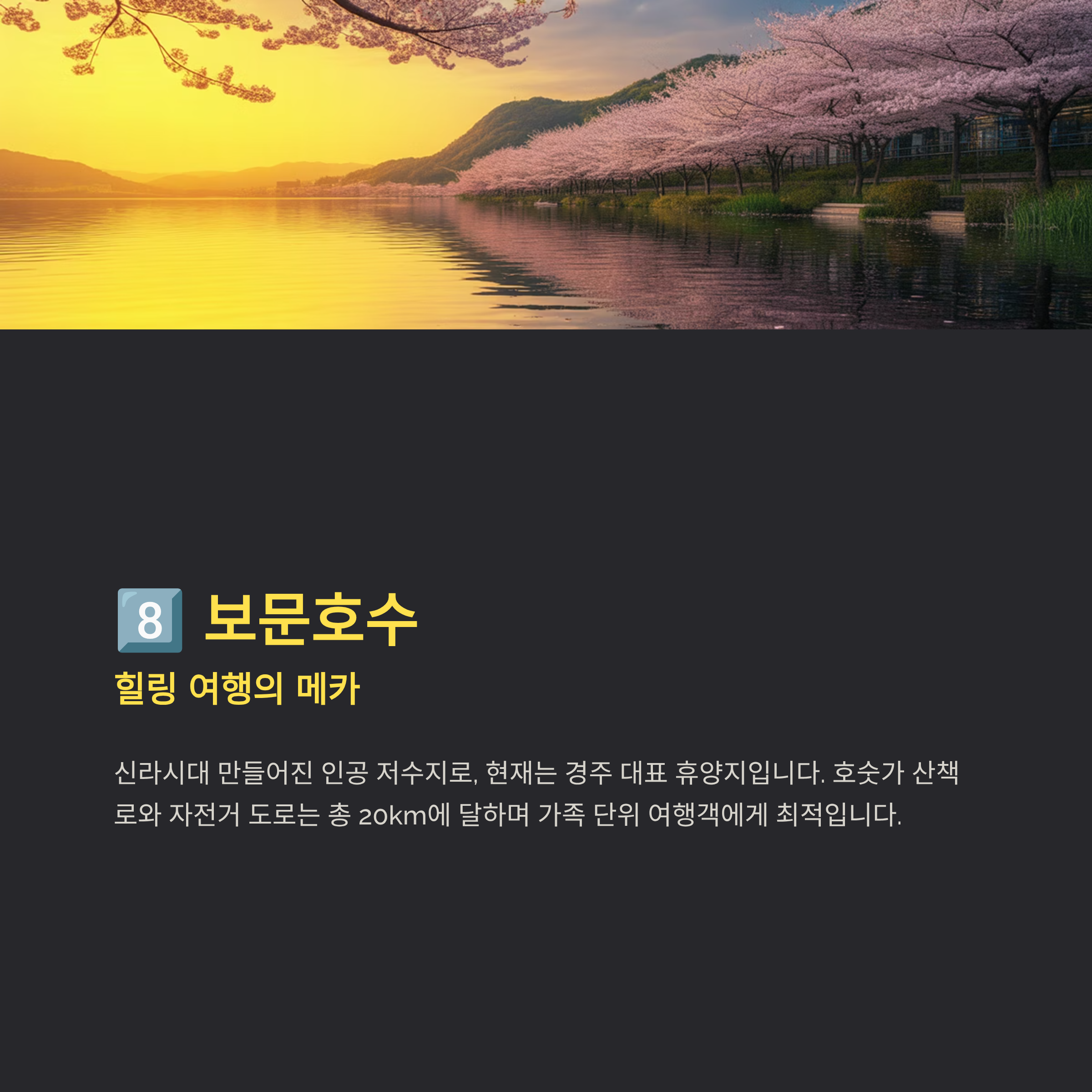 8️⃣ 🚣 보문호수 & 보문관광단지: 힐링 여행의 메카