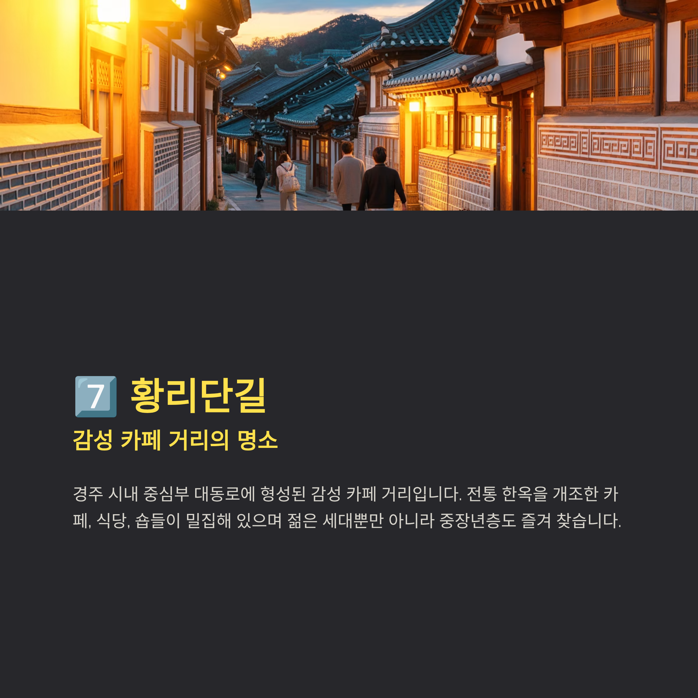 7️⃣ ☕ 황리단길: 감성 카페 거리의 명소