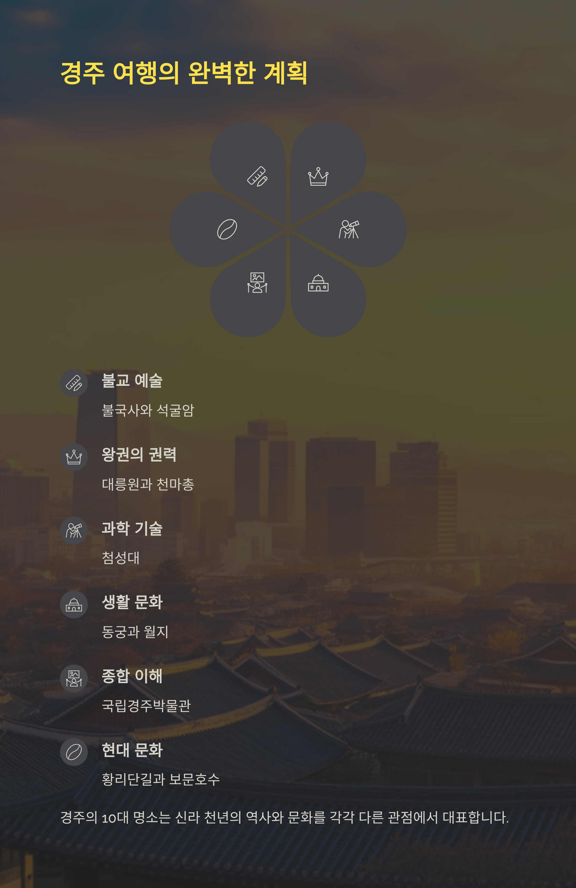 역사와 문화, 그리고 감성까지 완벽하게 담아낼 수 있는 경주 여행의 모든 정보를 제시합니다.