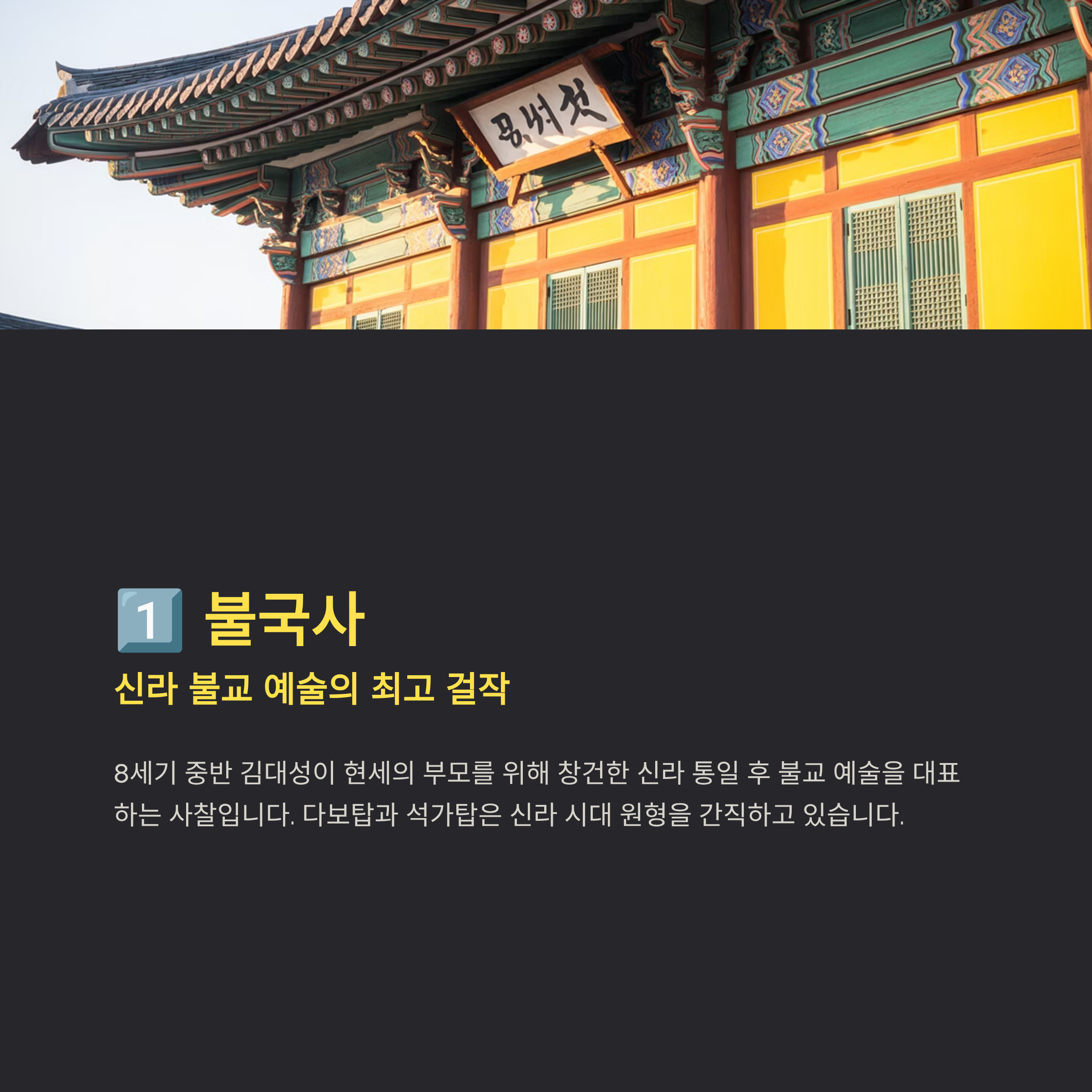 1️⃣ 🛕 불국사: 신라 불교 예술의 최고 걸작