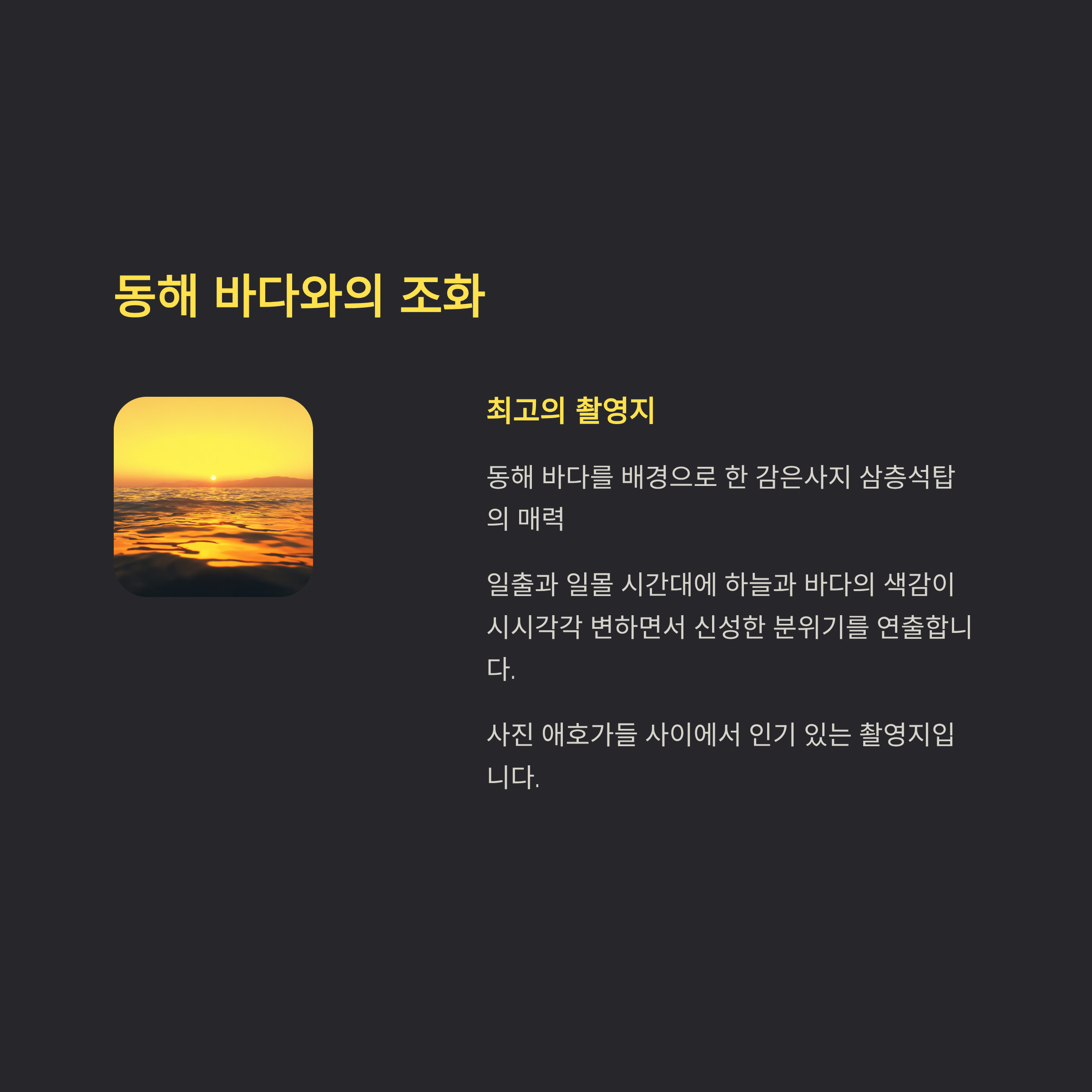 감은사지 삼층석탑의 가장 큰 매력은 동해 바다를 배경으로 한다는 점입니다.