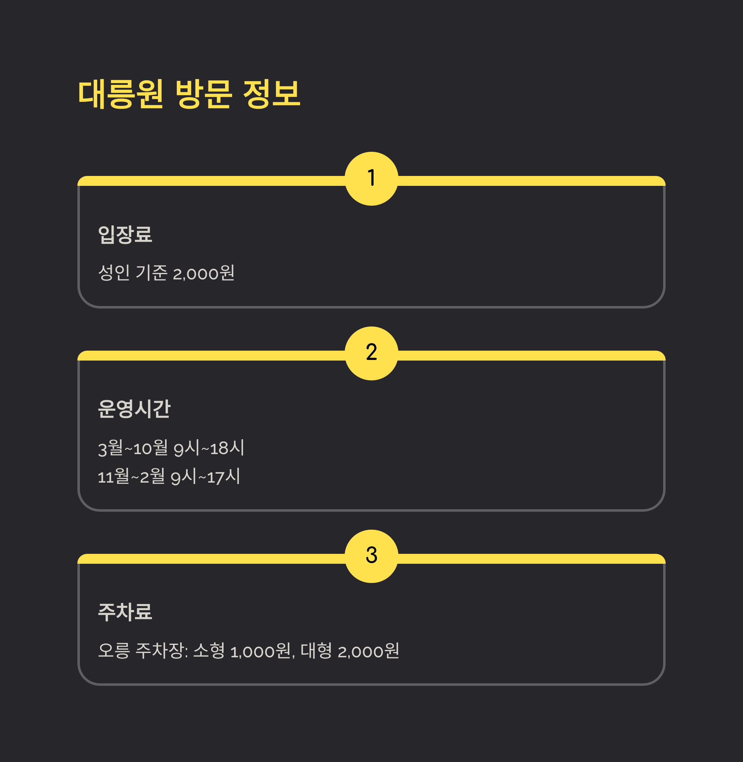 오릉 주차장에서는 소형 1,000원, 대형 2,000원의 주차료가 발생합니다.