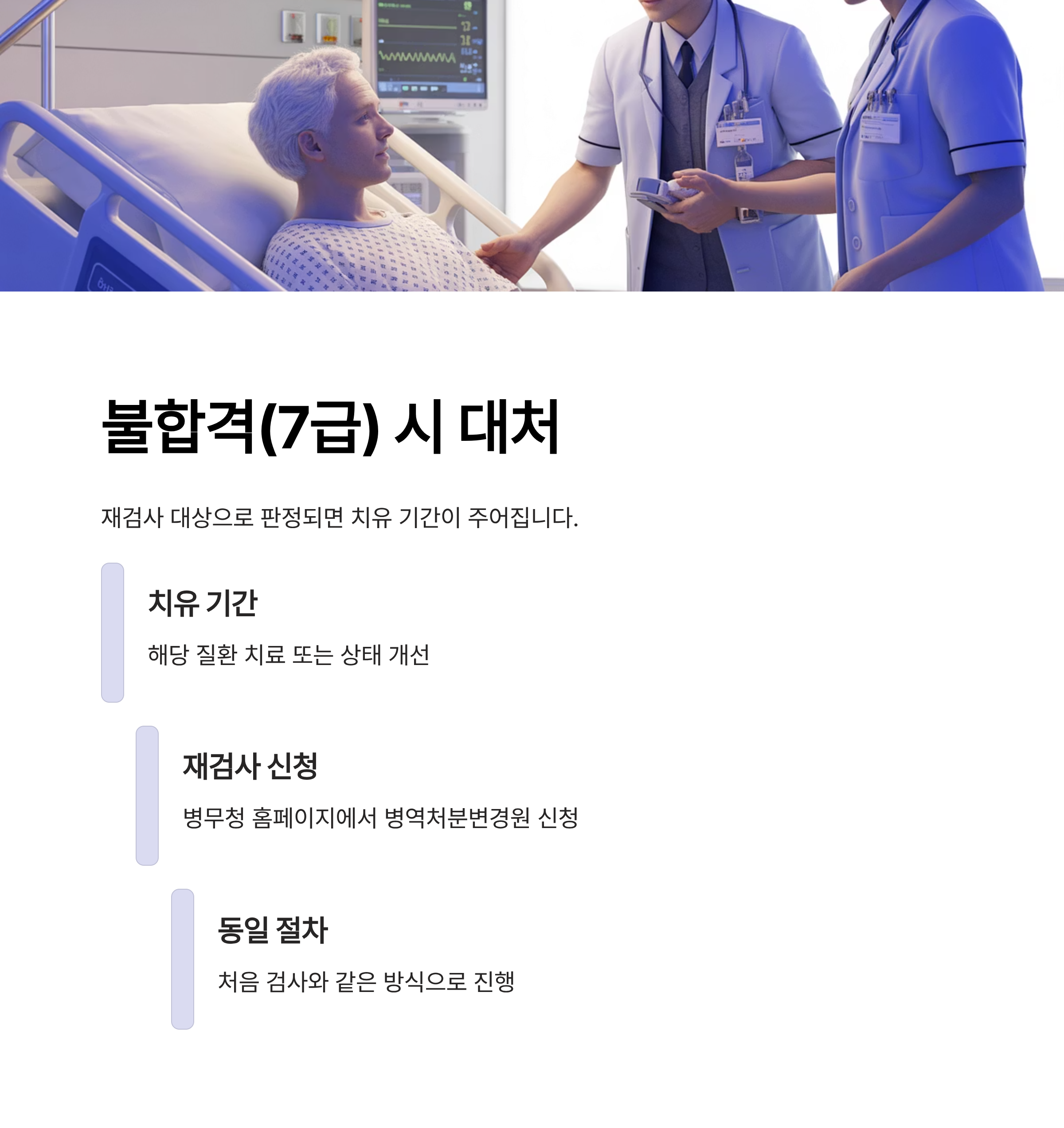 신체검사 결과 7급(재검사 대상)이 나오면 일정 기간의 치유 기간이 주어집니다.
